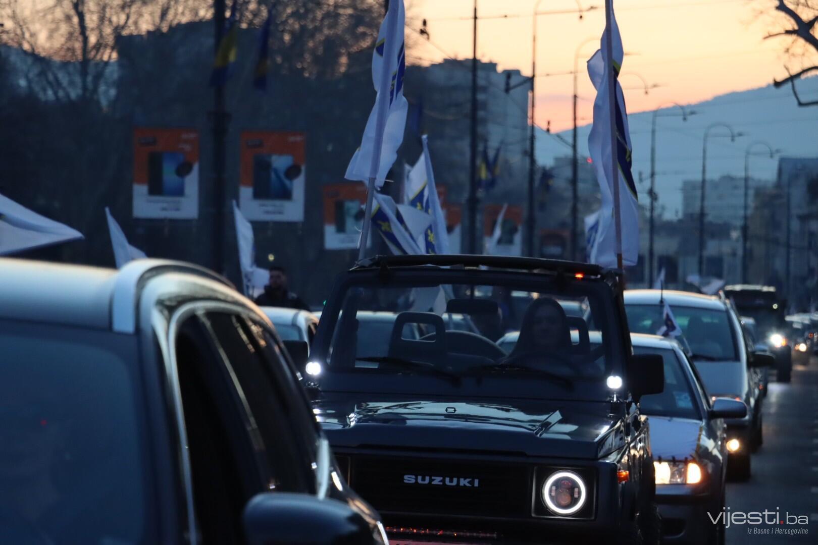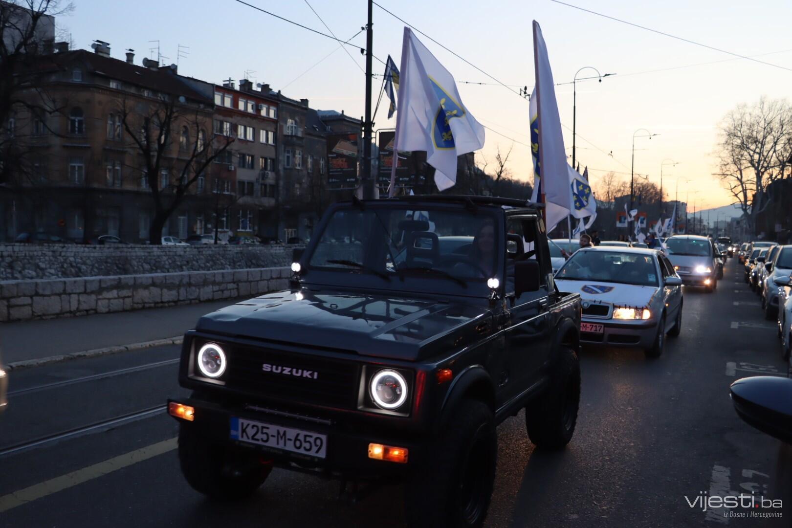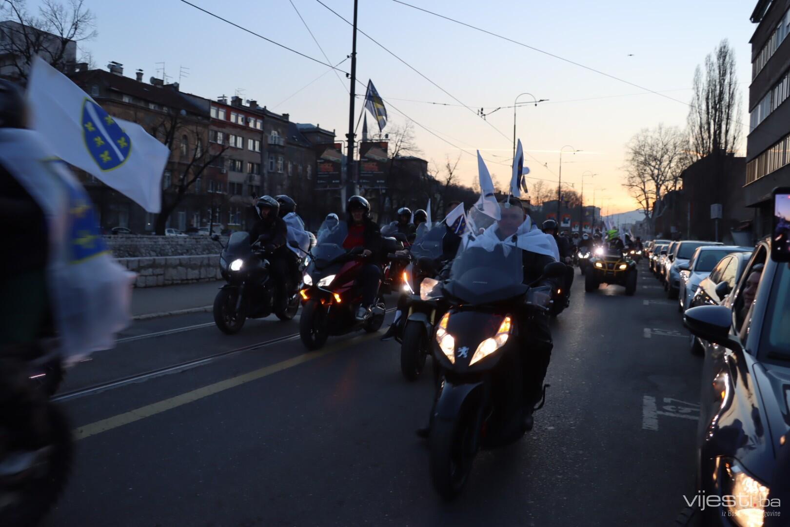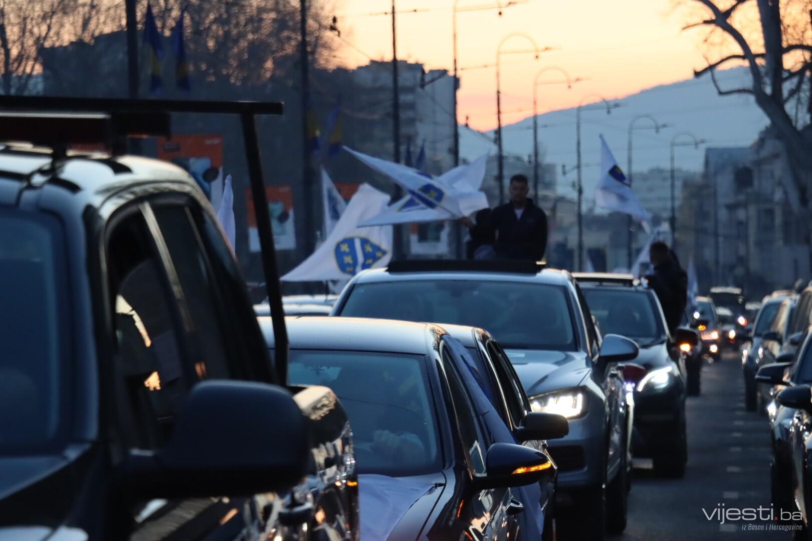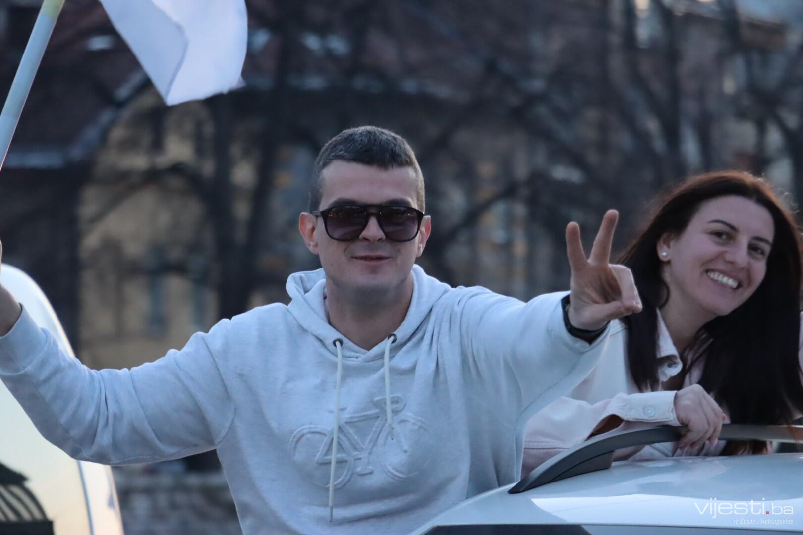 Kolona od više stotina automobila krenula je sa Stupa prema centru grada. Glavna gradska saobraćajnica pretvorila se u rijeku zastava, sirena i emocija. Krug kroz grad bio je više od vožnje, pokret zajedništva, poruka da se historija pamti i da se simboli ne zaboravljaju.
