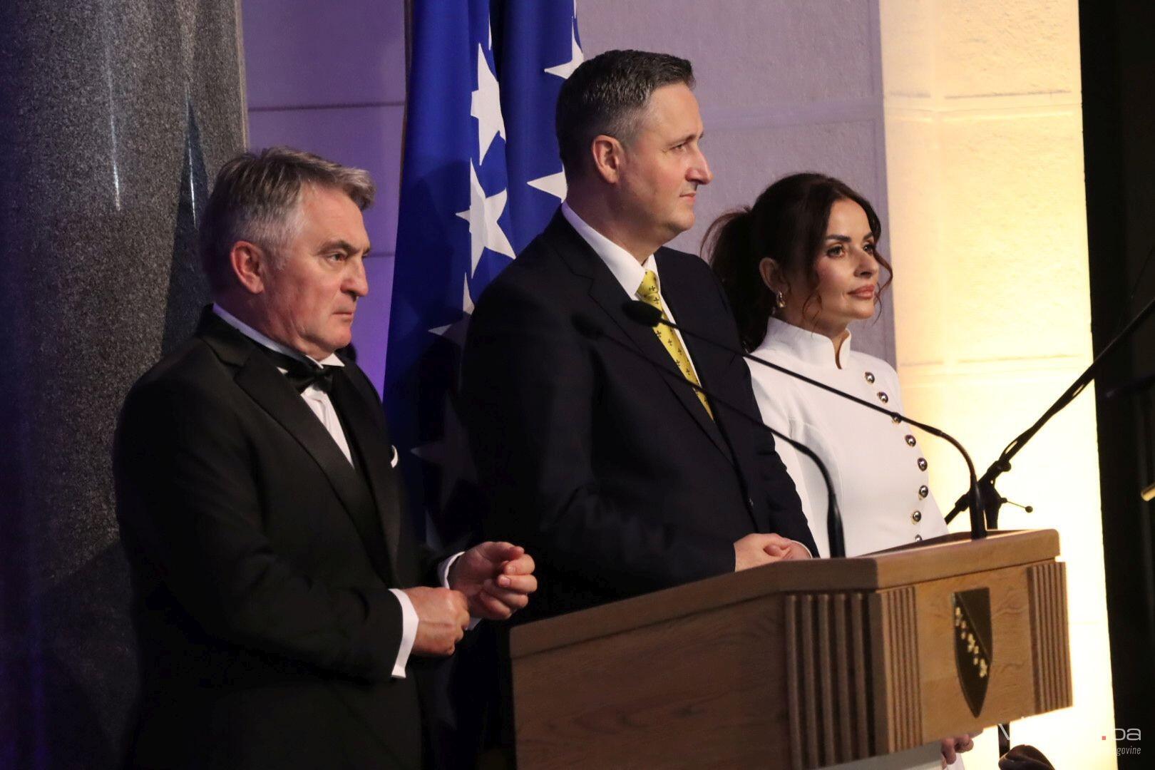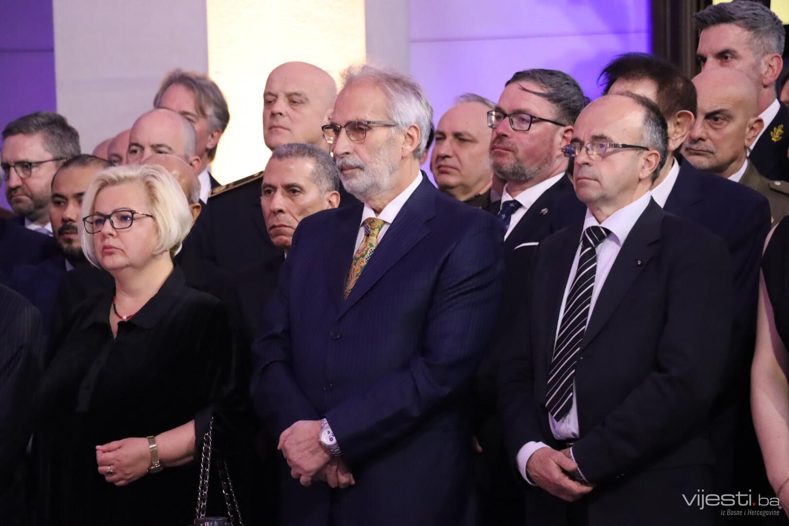 Domaćini događaja bili su članovi Predsjedništva BiH Željko Komšić i Denis Bećirović, koji su upriličili prijem u čast ovog značajnog datuma.