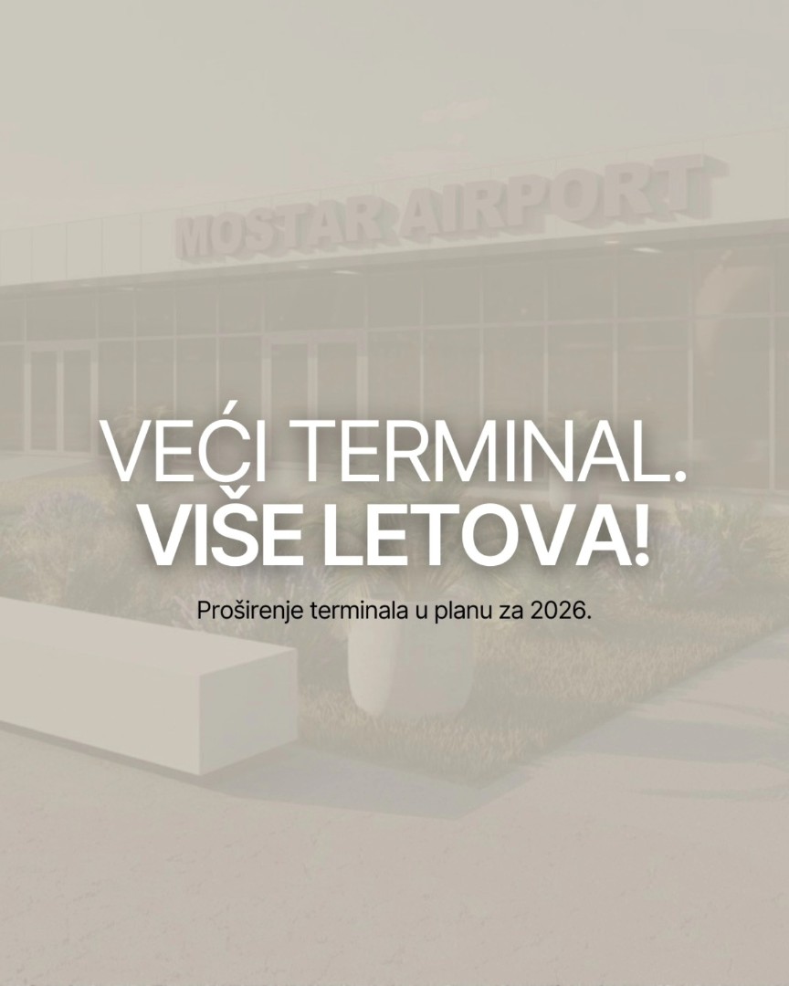 Aerodrom Mostar planira proširenje terminalne zgrade kako bi odgovorila na rastući broj putnika i sve veći interes aviokompanija, izvijestili su u utorak iz mostarskog aerodroma.