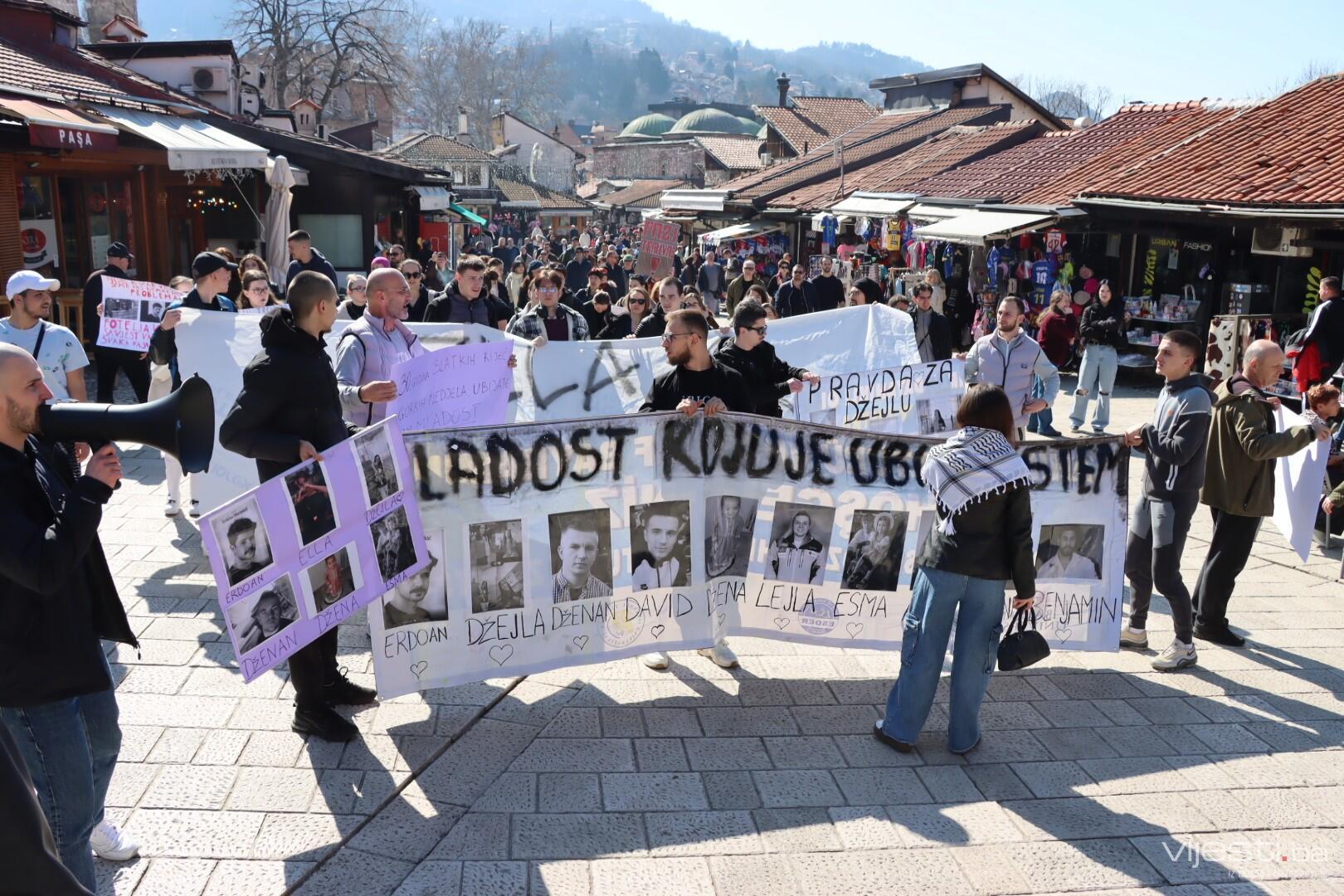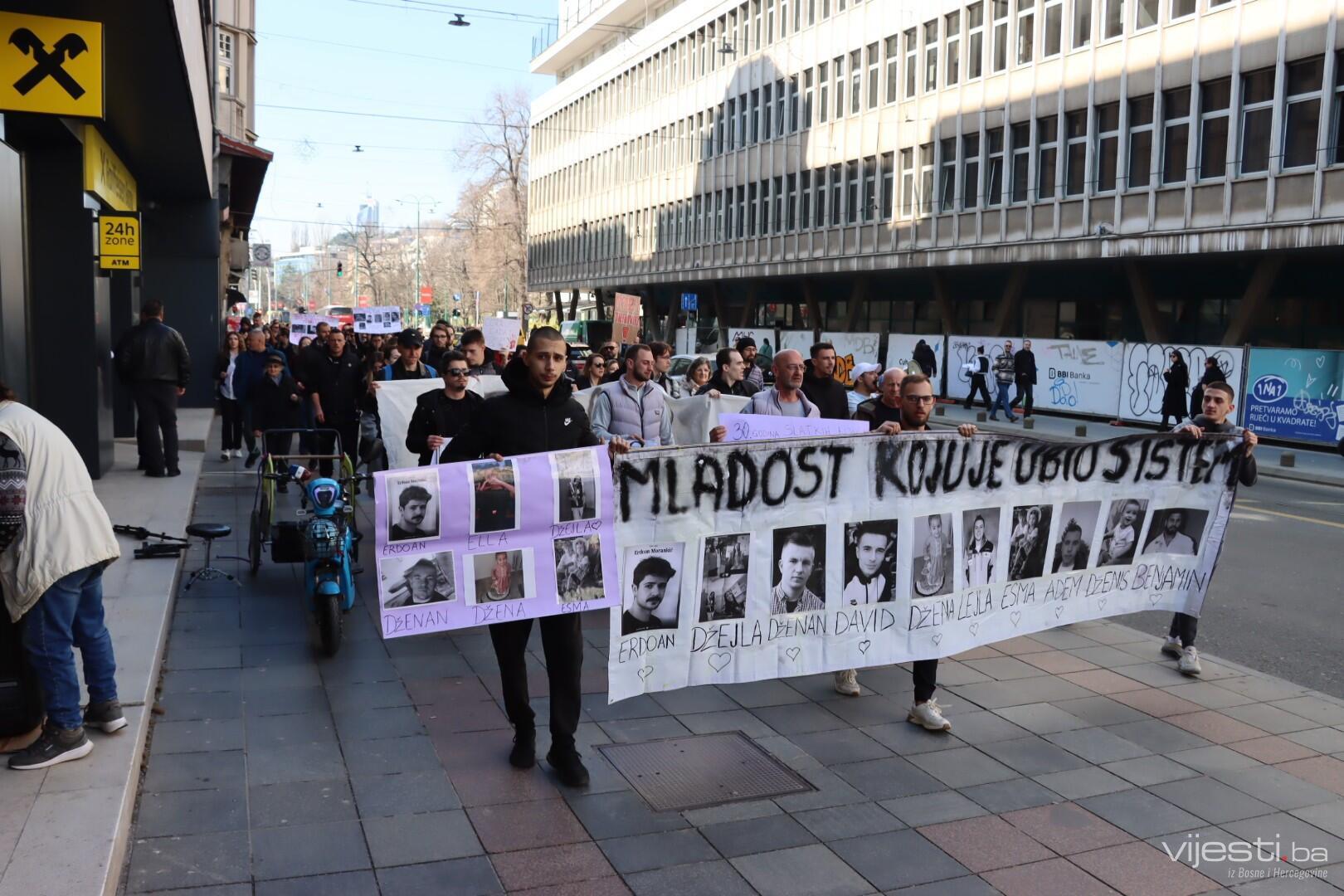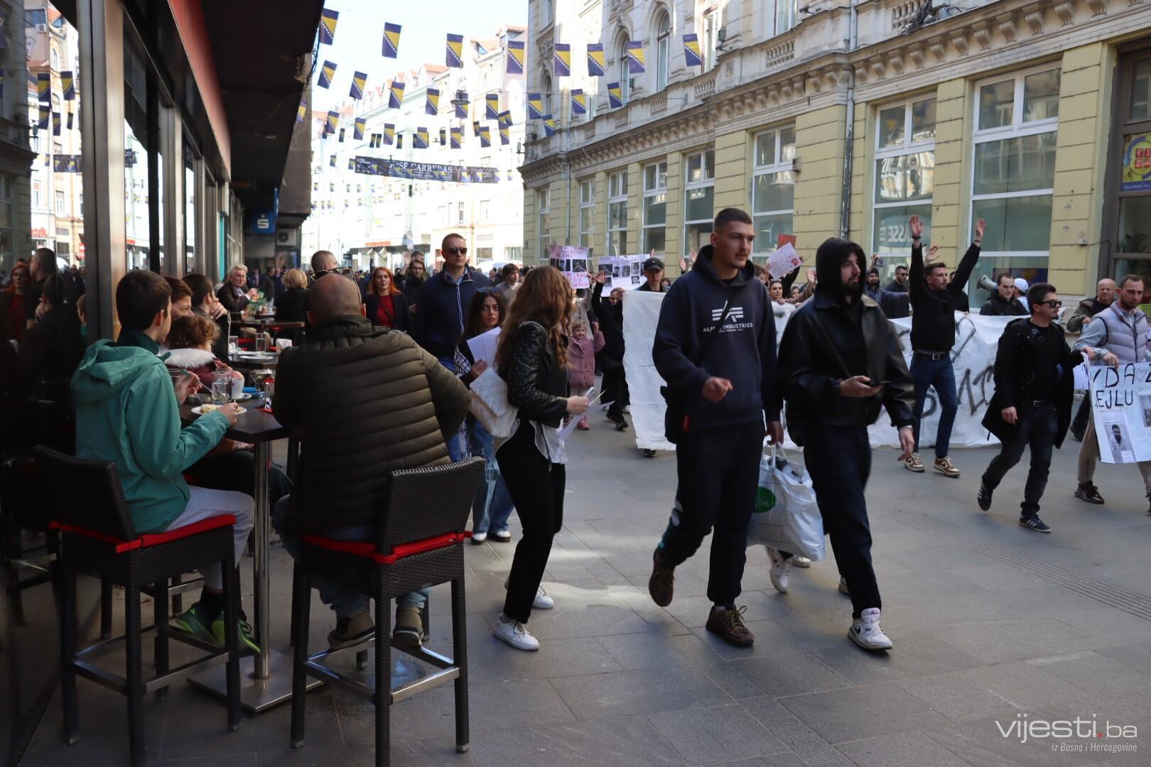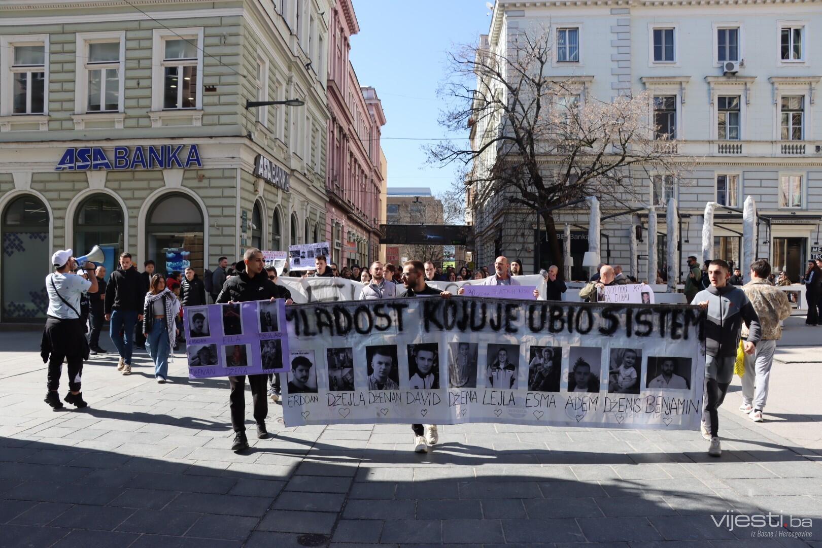 Mladi, koji su došli na protest ispred Skupštine Kantona Sarajevo, krenuli su u mirnu šetnju prolazeći kroz centralni dio glavnog grada.