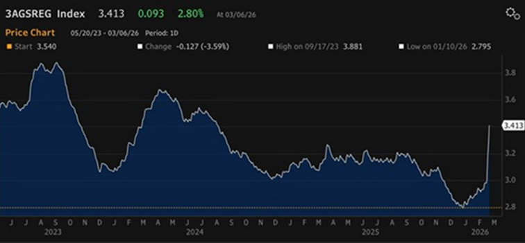 Prosječna cijena porasla je za 43 centa u samo sedam dana, što predstavlja najveći sedmični skok od početka marta 2022., ubrzo nakon što su Rusiji, jednoj od najvećih naftnih sila, uvedene obimne sankcije zbog invazije na Ukrajinu.