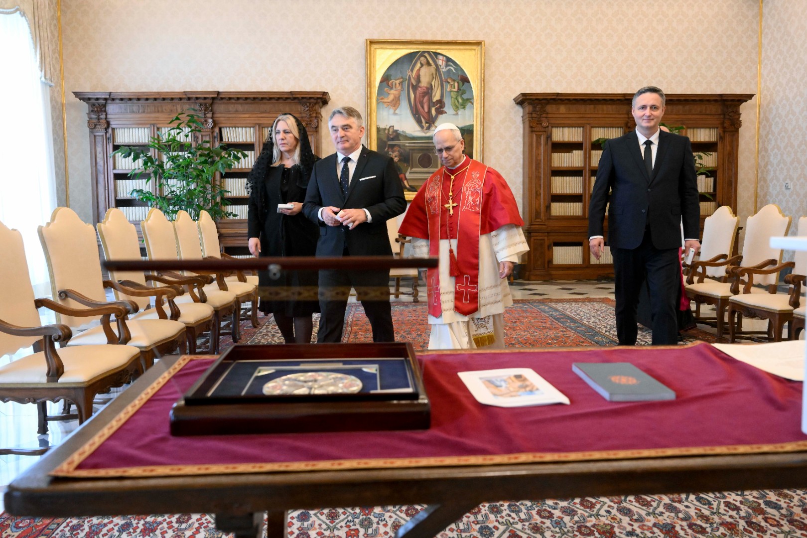 Članovi Predsjedništva BiH prenijeli su pozdrave uime BiH te izrazili zahvalnost na kontinuiranoj podršci koju Sveta stolica pruža našoj zemlji, uz nadu da će se ta podrška nastaviti i u budućnosti.