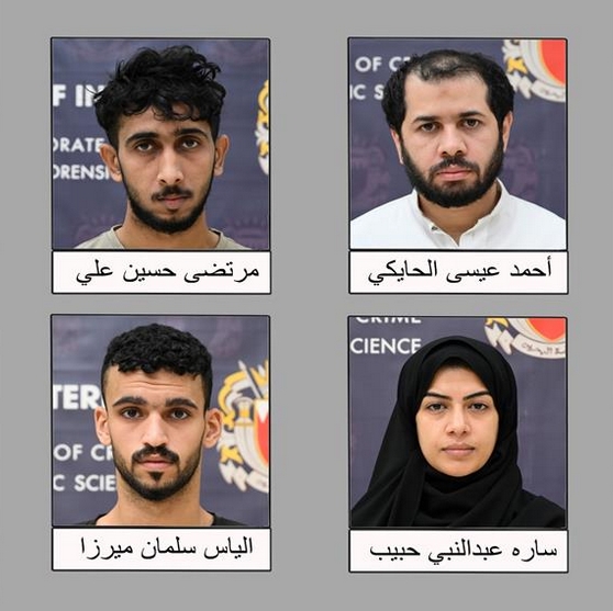 Uhapšeni su Murtadha Hussain Awal (25), Ahmed Isa al-Haiki (34), Sarah Abdulnabi Marhoon (36) i Elias Salman Mirza (22), koje je privela Generalna uprava za kriminalističke istrage i forenzičku nauku.