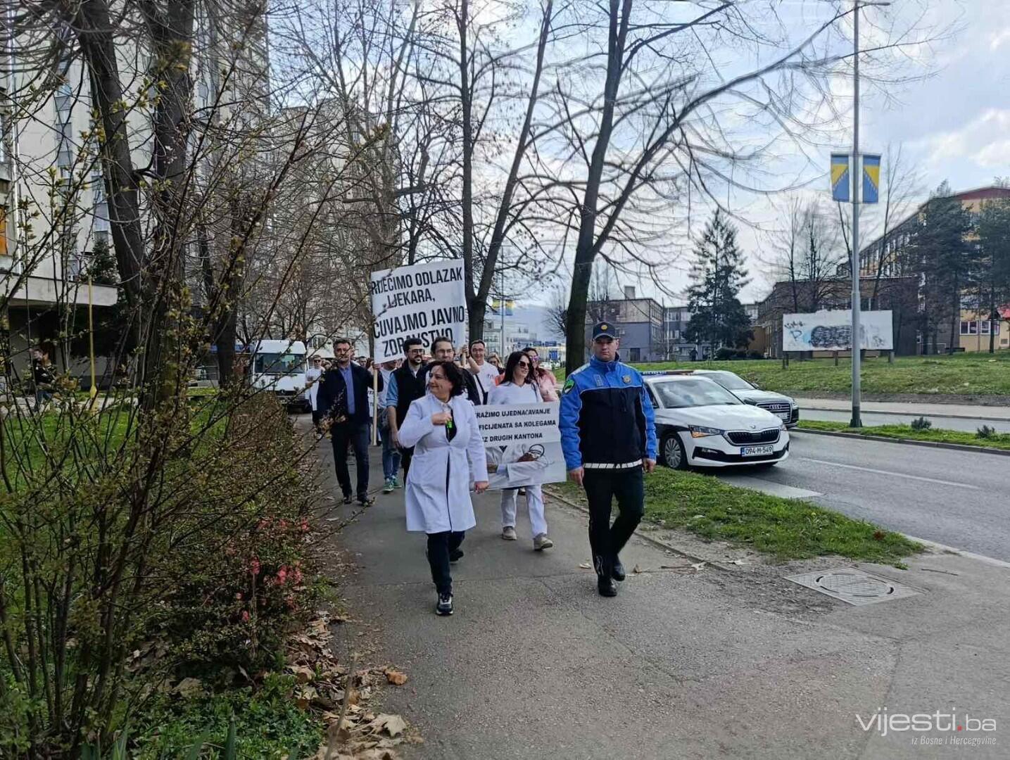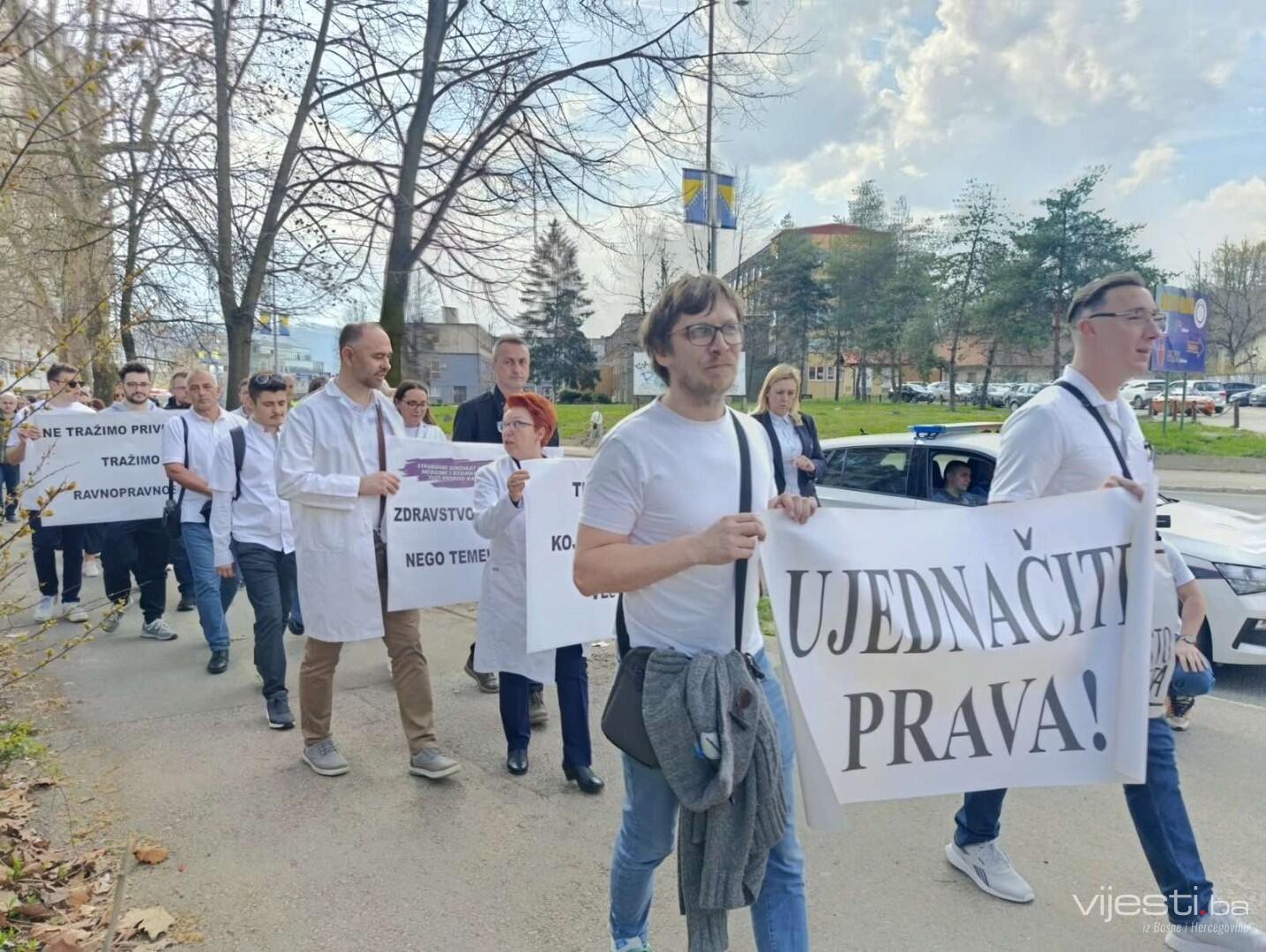 Sindikat doktora medicine i stomatologije Tuzlanskog kantona danas je organizovao mirnu protestnu šetnju u Tuzli, a na kojem je bilo oko 200 doktora.