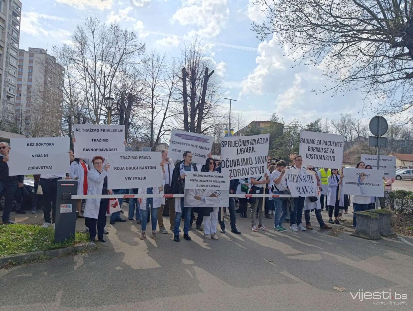 "Danas smo se ovdje sakupili da očuvamo javni zdravstveni sektor i da osiguramo da naše građanstvo ima dostupnu zdravstvenu uslugu. Da bi to bilo moguće, moramo spriječiti odliv ljekara iz javnog zdravstvenog sektora. Osnovni razlog zbog kojeg smo ovdje jeste nekorektan stav Vlade prema doktorima specijalistima i subspecijalistima", rekla je prof.dr Elvira Konjić, predsjednica podružnice Strukovnog sindikata doktora medicine i stomatologije TK.