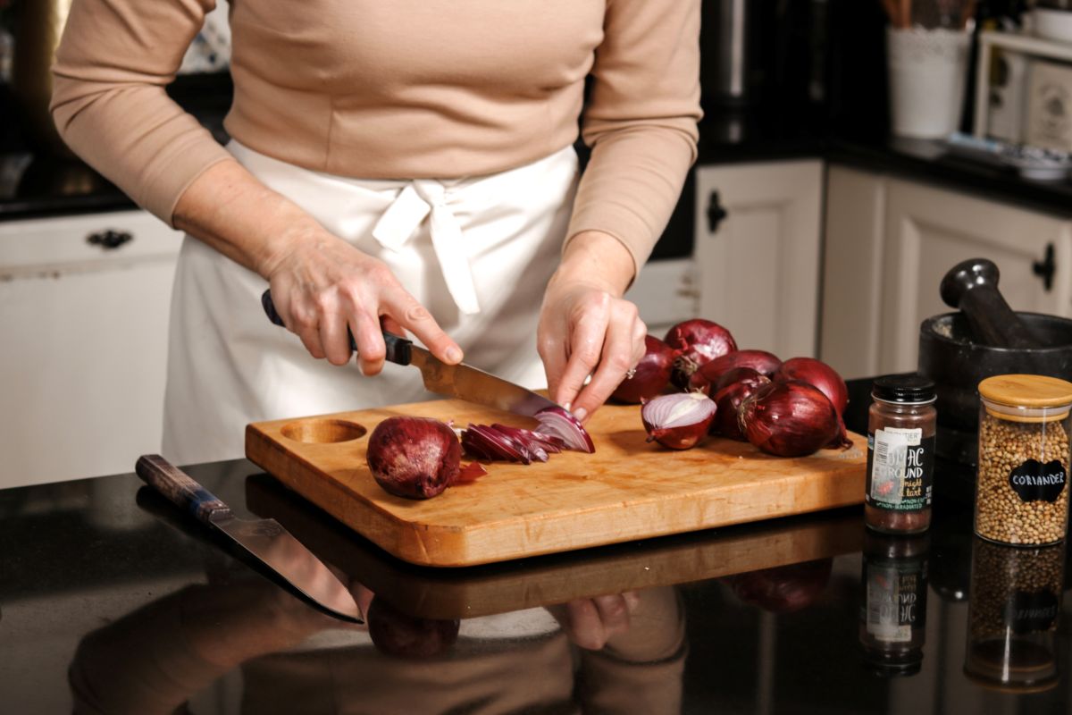 A ostatak namirnica za pripremu musakhana uključuje crveni luk, ekstra djevičansko maslinovo ulje, pileću kocku za supu, sumak, pržene ili tostirane pinjole.