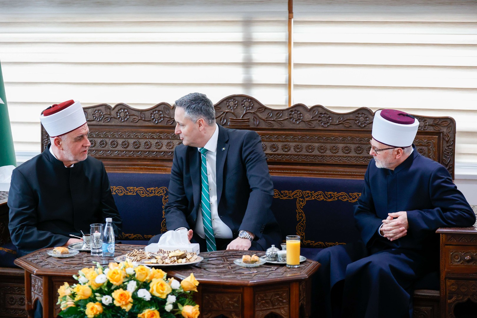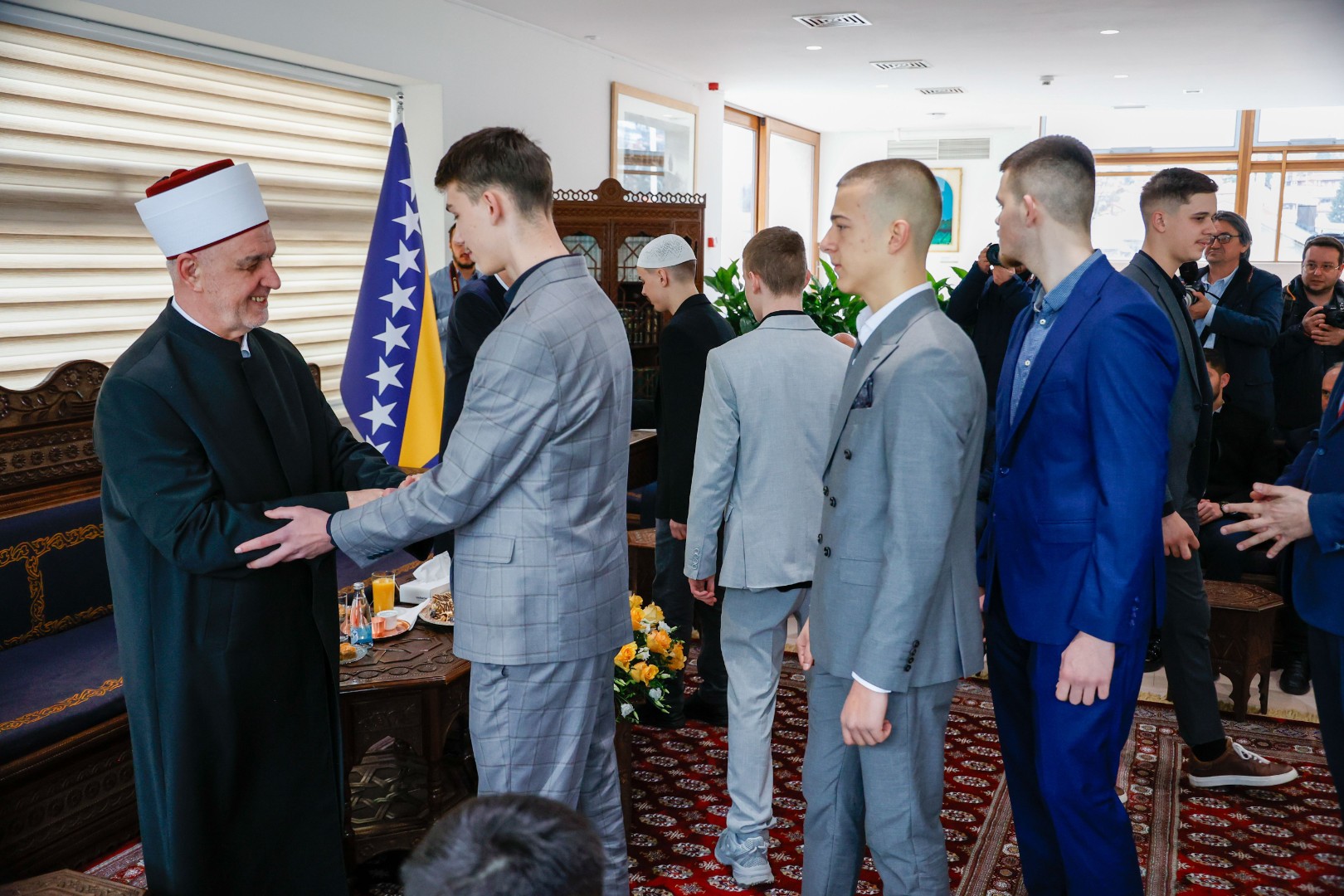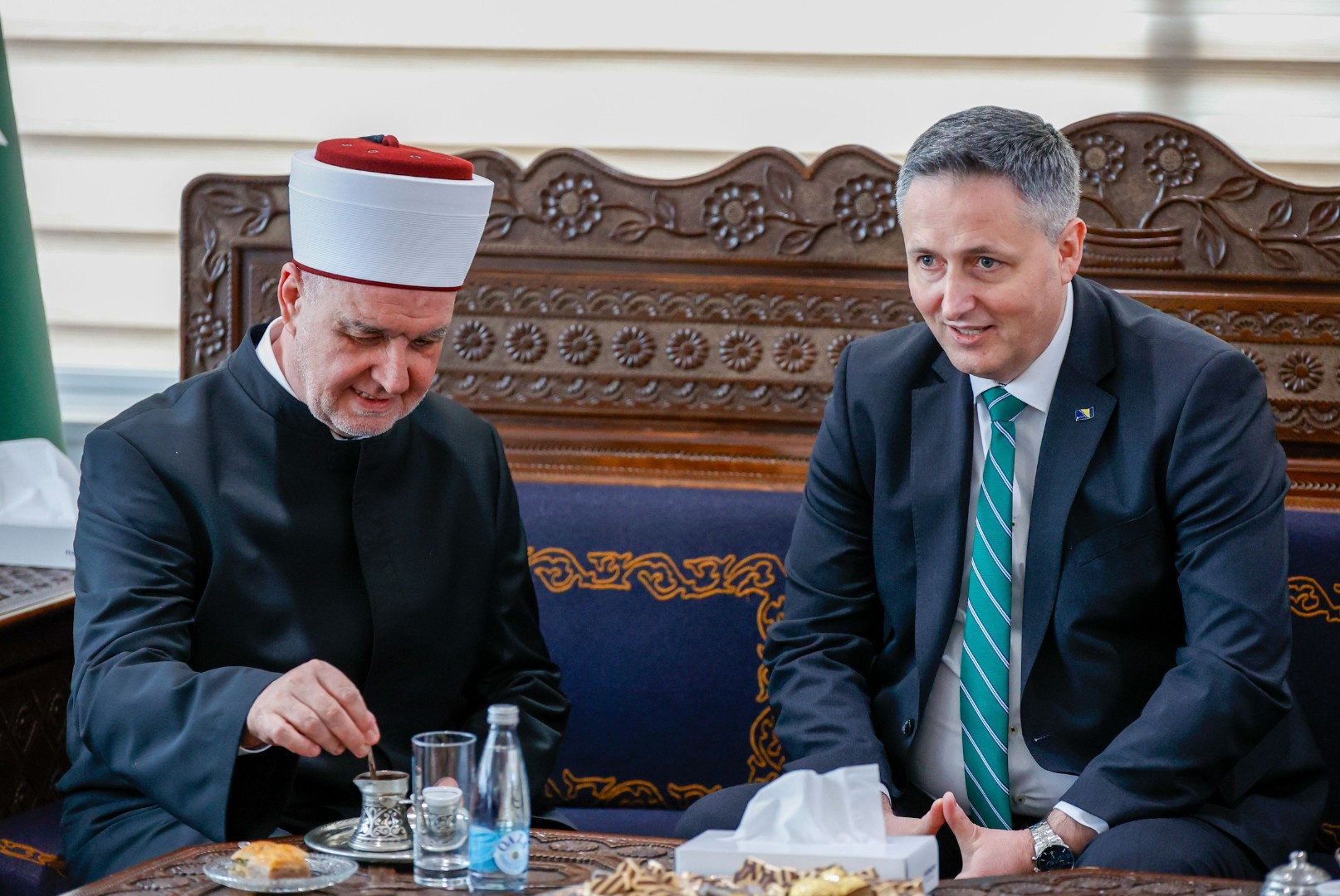 Reisu-l-ulema je goste dočekao uz kafu, sok i baklavu, a na bajramsko čestitanje među ostalim došao je član Predsjedništva BiH Denis Bećirović.