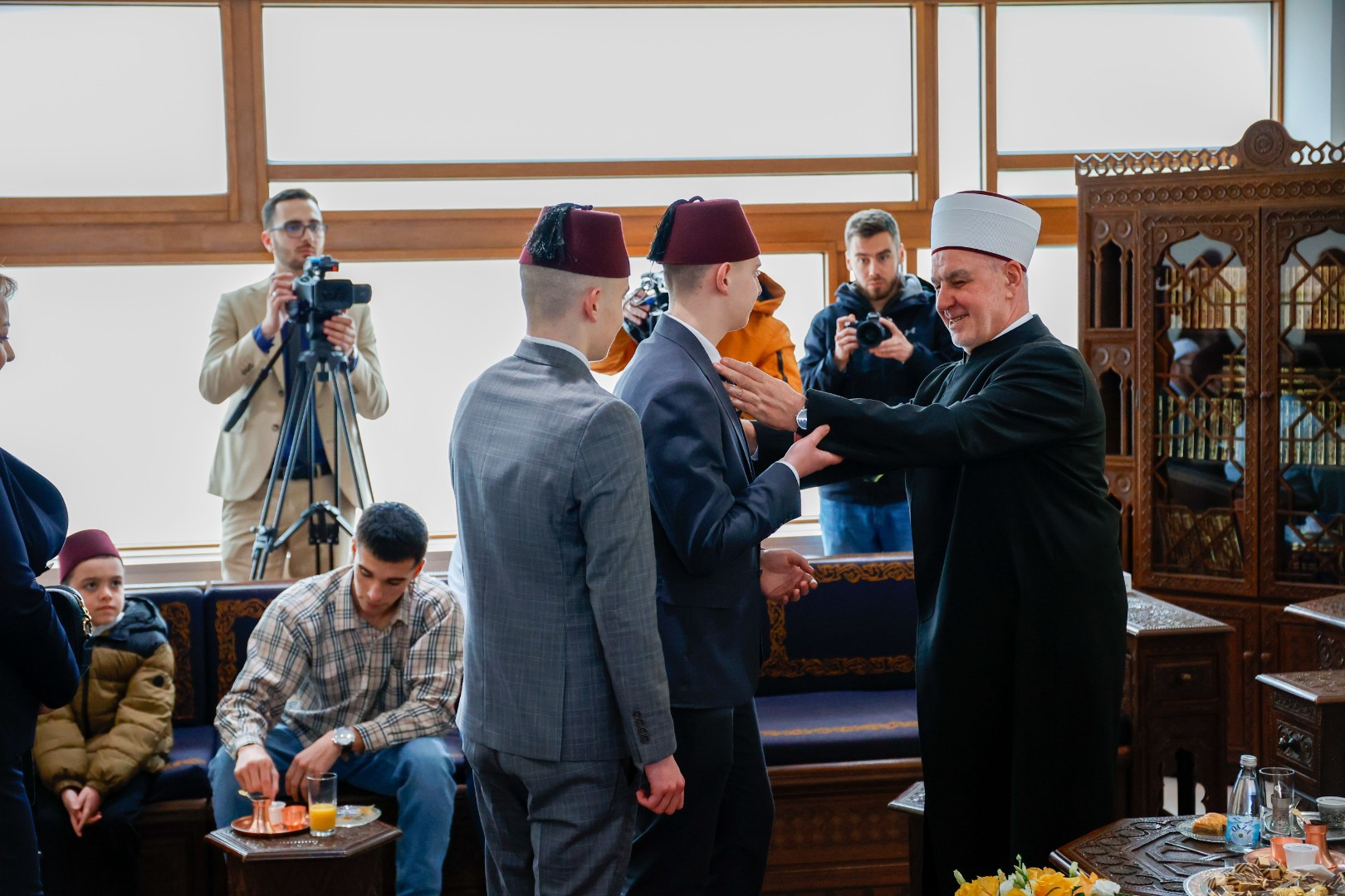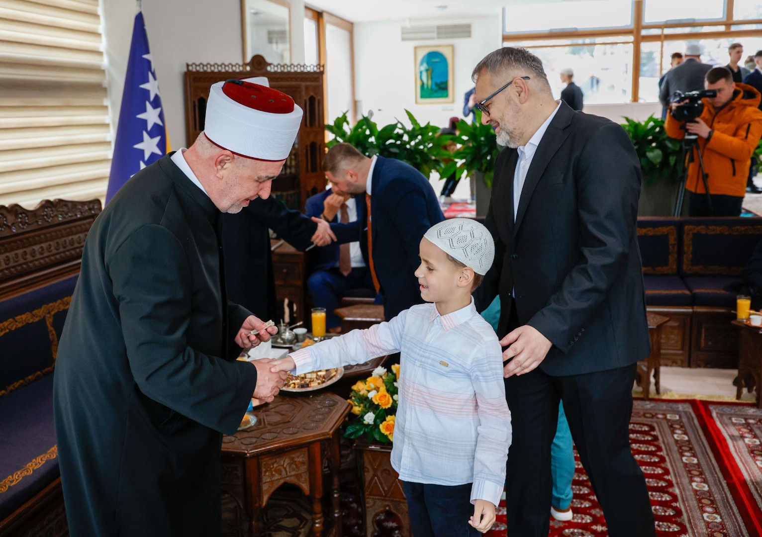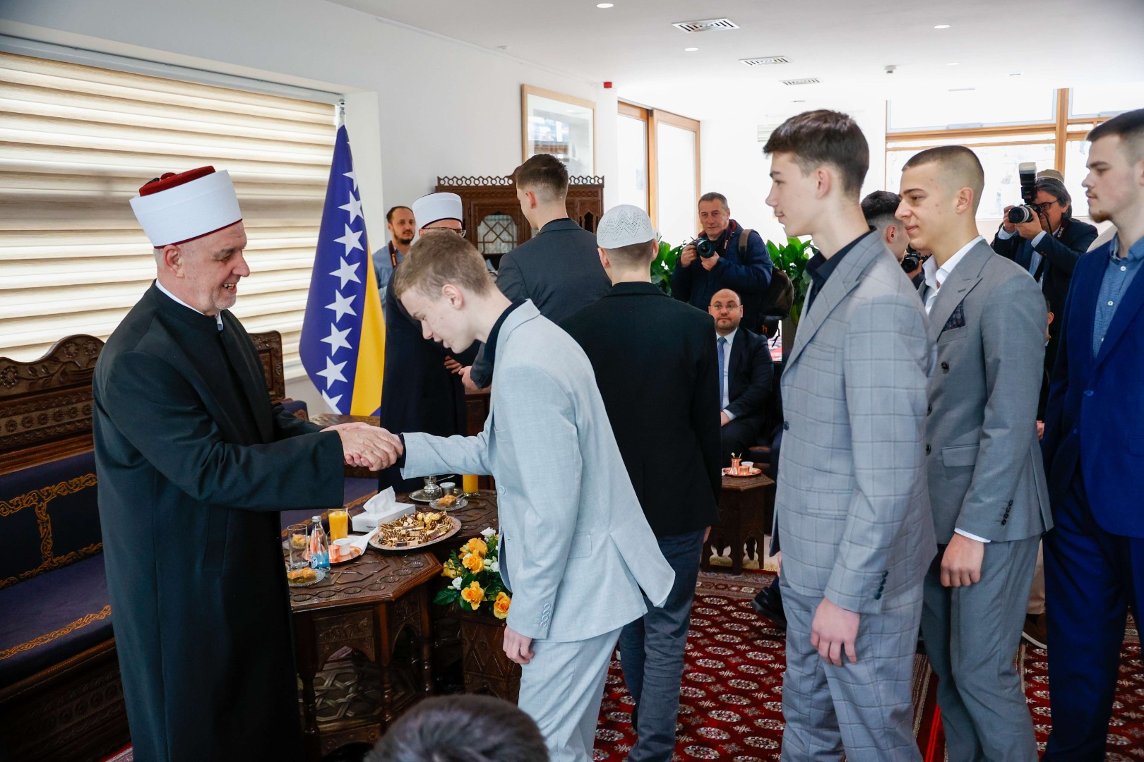 Reisu-l-ulema je goste dočekao uz kafu, sok i baklavu, a na bajramsko čestitanje među ostalim došao je član Predsjedništva BiH Denis Bećirović.