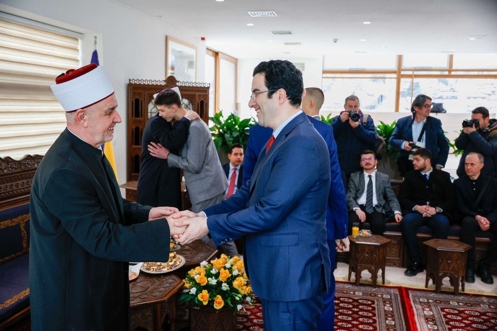 Bila je to prilika da brojni čestitari – predstavnici diplomatskog kora, Islamske zajednice u BiH, javnog i političkog života, akademske zajednice i drugi upute najljepše želje reisu-l-ulemi Huseinu ef. Kavazoviću.