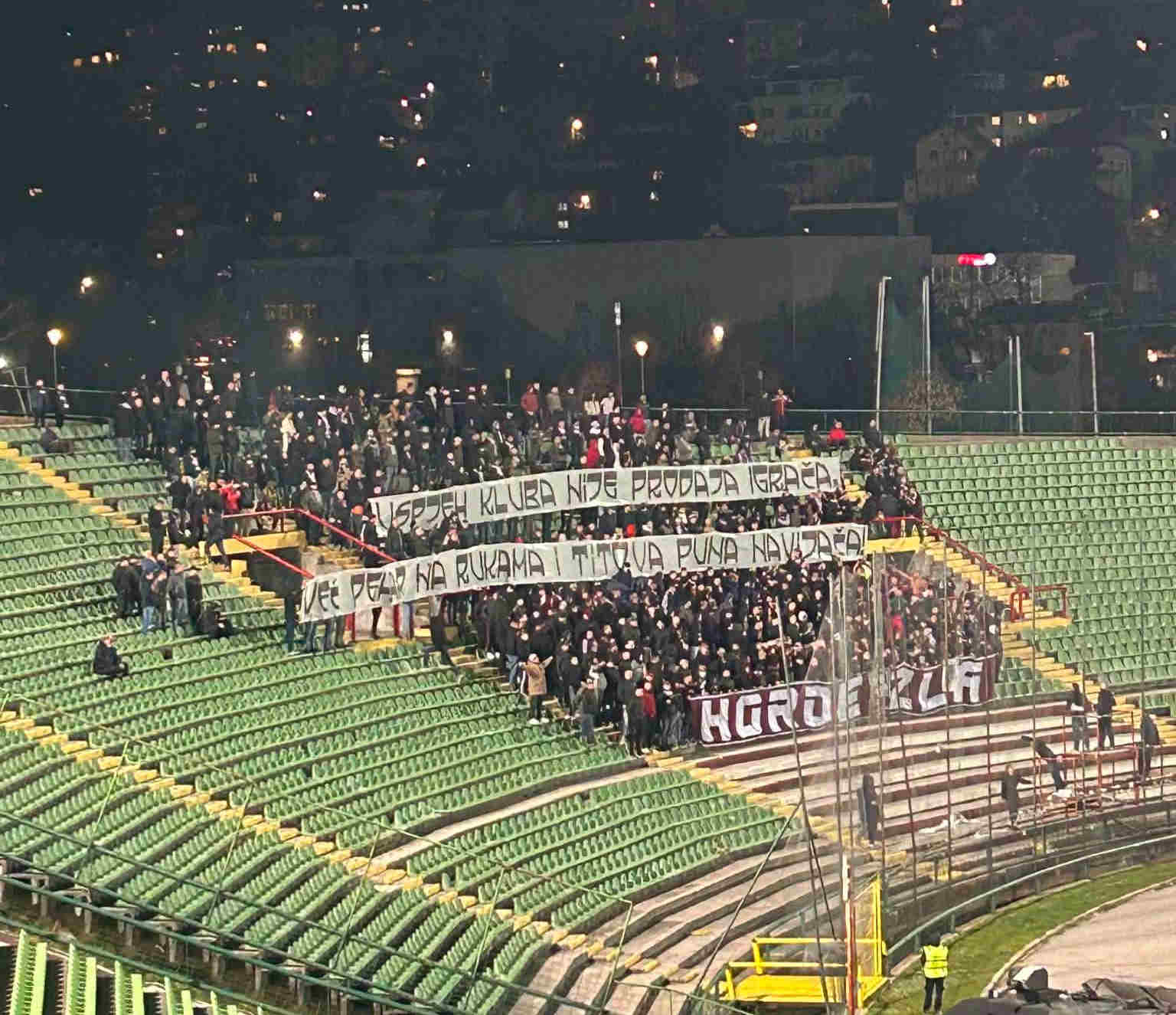 45' Navijači Sarajeva su istakli još jednu parolu kojom su izrazili nezadovoljstvo radom Uprave kluba.