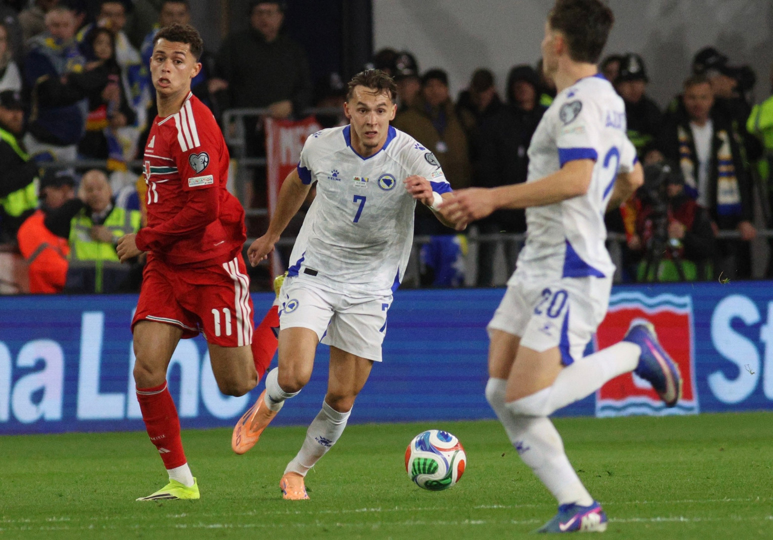 30' Oprezna igra naše reprezentacije do sada. Lopta je 65 posto vremena u nogama domaćina. 223 dodavanja igrača Velsa - 92 dodavanja reprezentativaca BiH.