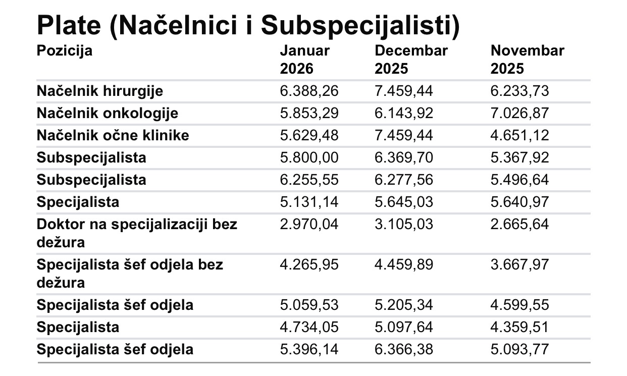 Ipak, stvarna isplaćena plata subspecijaliste u januaru 2026. godine, uključujući sve sate rada i dežurstva, iznosila je 6.627 KM.
