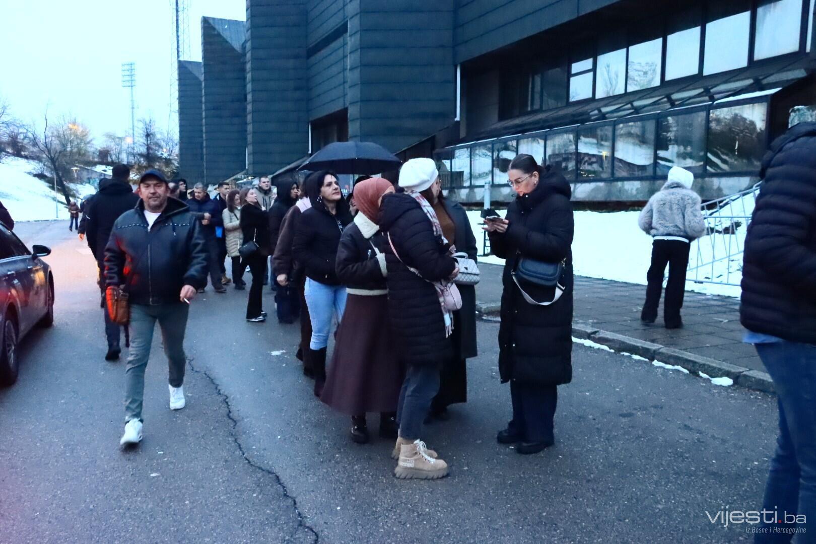 Fotoreporter Vijesti.ba ispred sarajevske dvorane dva sata prije početka spektakla bilježi veliku gužvu i redove na ulasku.