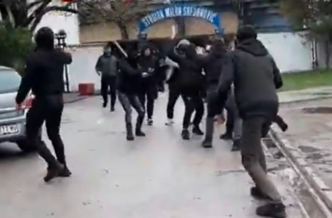 Iz automobila bez registracija izleteo veliki broj muškaraca sa palicama kod stadiona Hajduka iz Kule. Policija je došla na lice mesta i legitimiše građane koje je ta grupa napala pic.twitter.com/J9PgqRrPq6