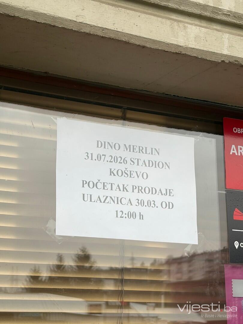 Također, ulaznice još uvijek nije moguće kupiti ni online, a prodavat će se na platformi adriaticket.ba.