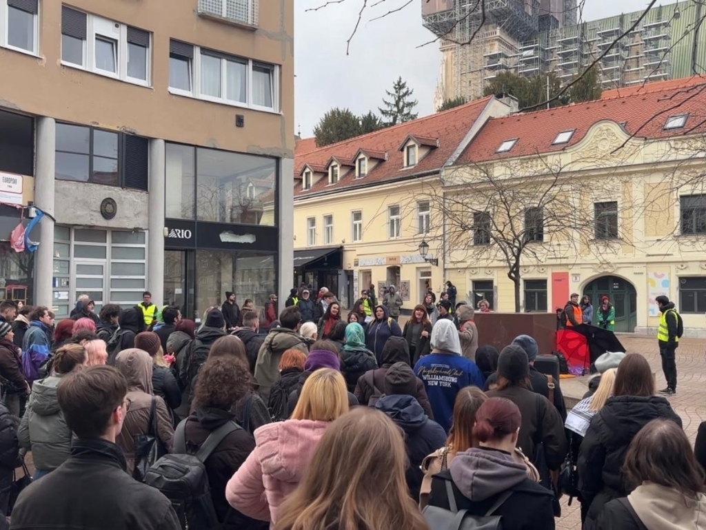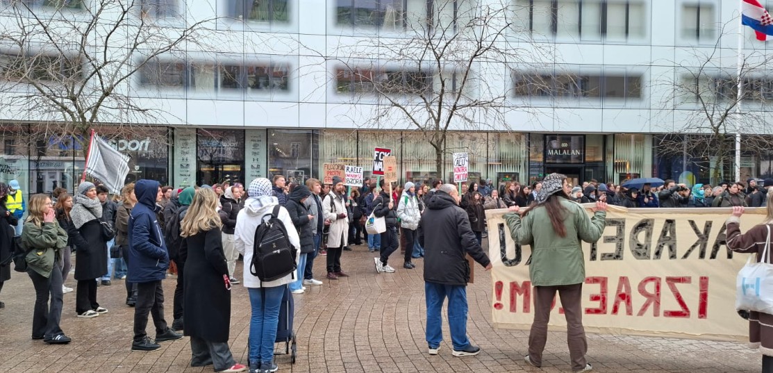 "Proteklih smo godina govorile o šutnji naše akademske zajednice. Šutnji koja nije neutralna. Šutnja koja nije ne-miješanje. Od danas govorimo o sudjelovanju. Govorimo o proizvodnji aparature genocida za cionistički režim,” poručile smo na licu mjesta. “Naše studentice i studenti su od 60-ih godina u borbi protiv fašizma i imperijalizma ujedinjeni s palestinskim kolegama. Borba se nastavlja, u njoj smo rame uz rame. Zato od Europske komisije, naše akademske zajednice i Vlade RH zahtijevamo potpuno isključenje Izraela iz programa Obzor. Tražimo potpuni prekid suradnje sa režimom okupacije, sa režimom aparthejda, sa režimom genocida."