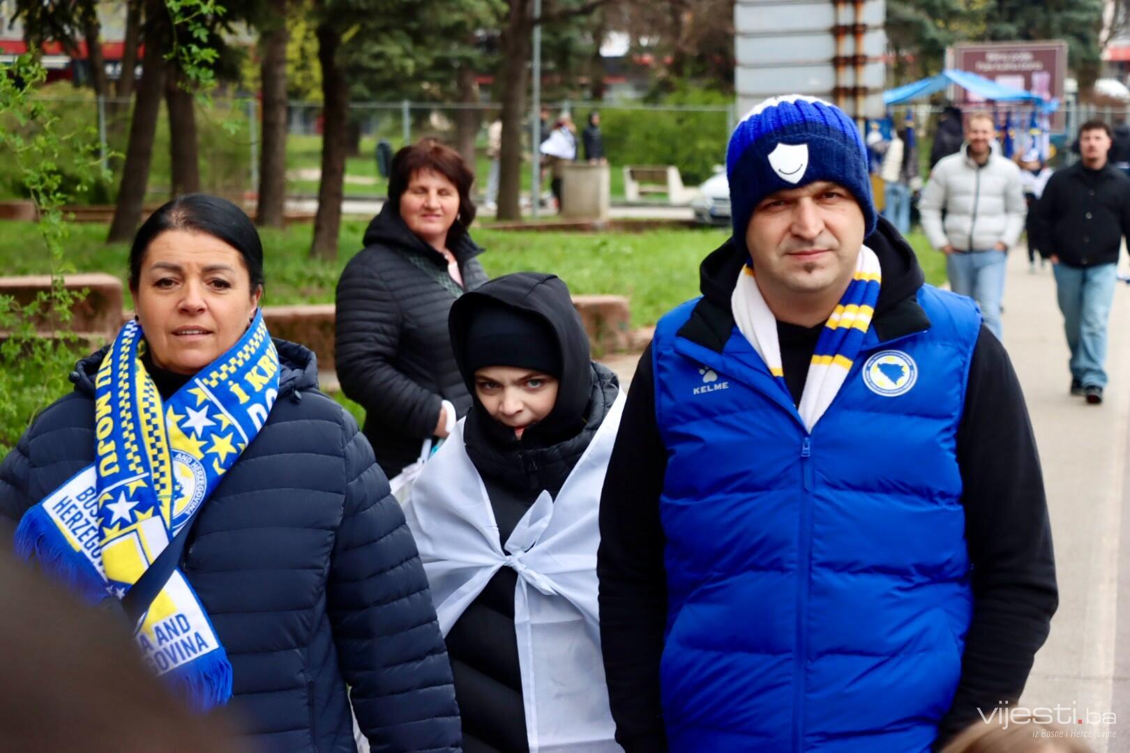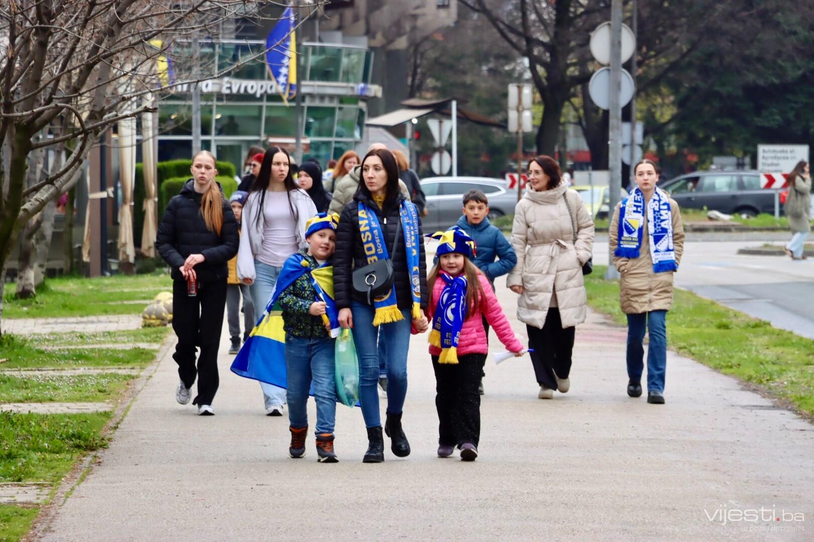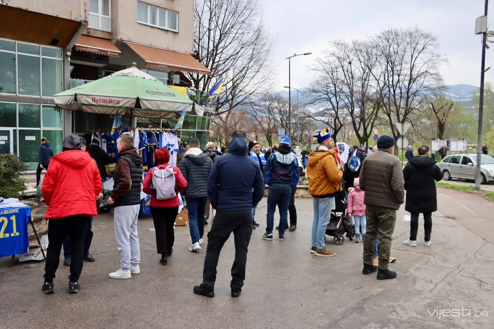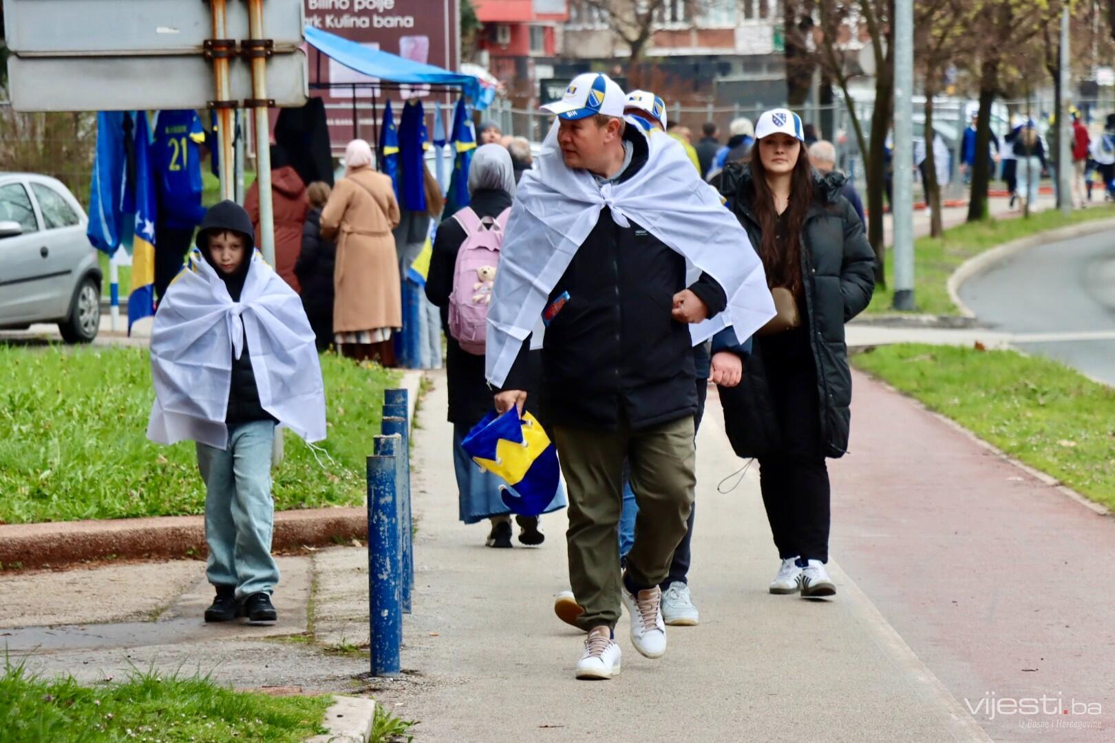 Zastave Bosne i Hercegovine vijore se s balkona, automobila, a navijački rekviziti već su spremni kao da je utakmica počela. Na ulicama Zenice osjeća se zajedništvo kakvo se rijetko viđa. Djeca nose dresove svojih idola, stariji evociraju uspomene na prethodne velike pobjede, a svi zajedno nose jednu misao – večeras je moguće.