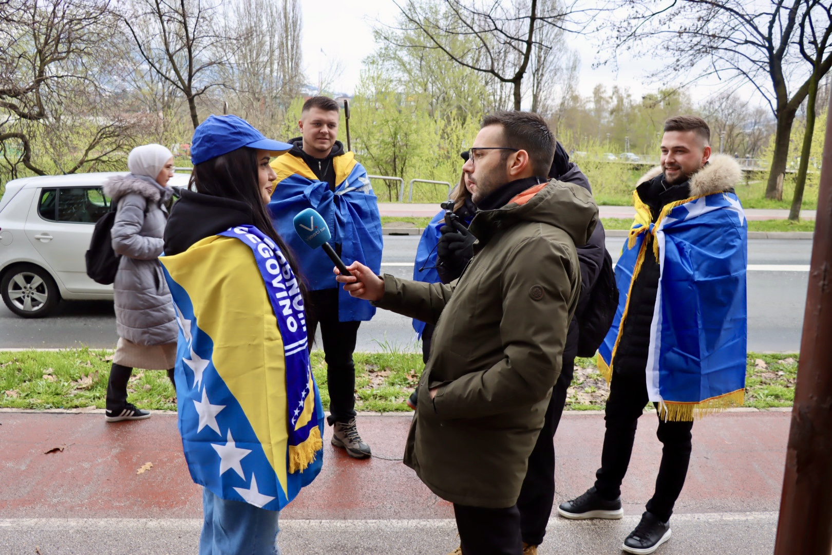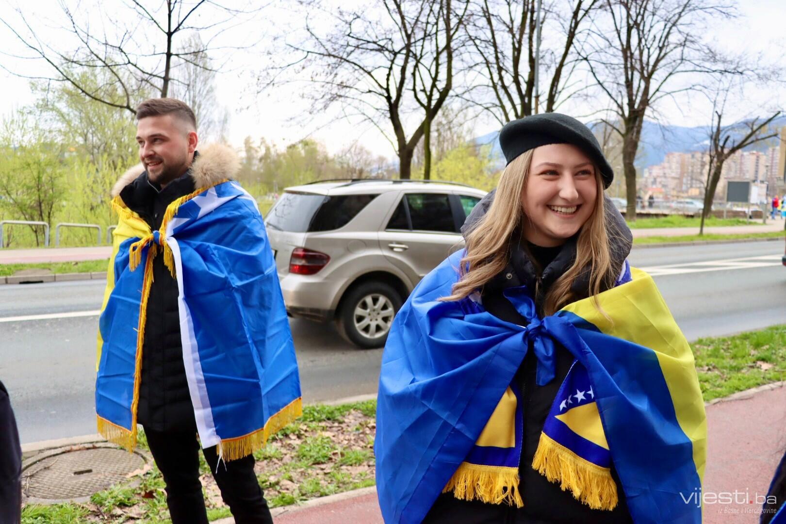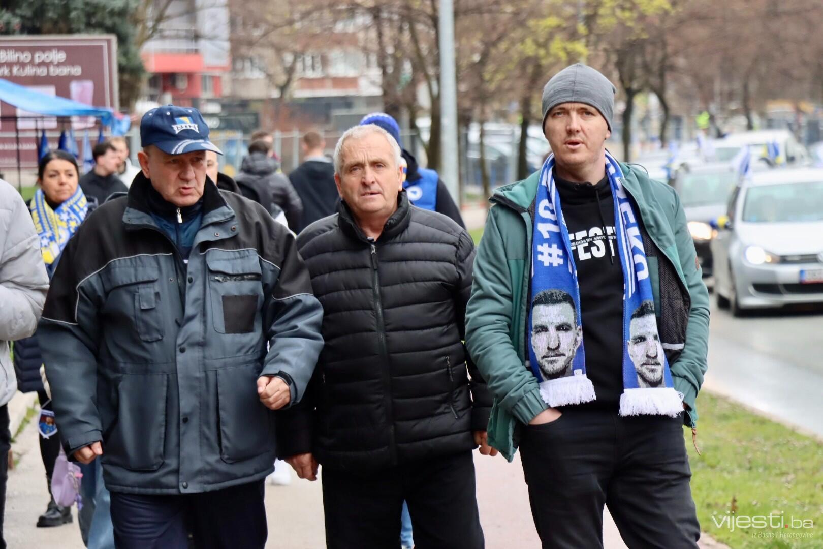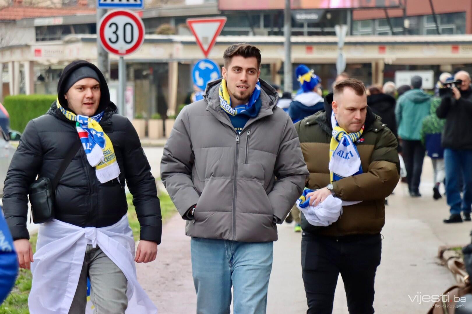 Zastave Bosne i Hercegovine vijore se s balkona, automobila, a navijački rekviziti već su spremni kao da je utakmica počela. Na ulicama Zenice osjeća se zajedništvo kakvo se rijetko viđa. Djeca nose dresove svojih idola, stariji evociraju uspomene na prethodne velike pobjede, a svi zajedno nose jednu misao – večeras je moguće.