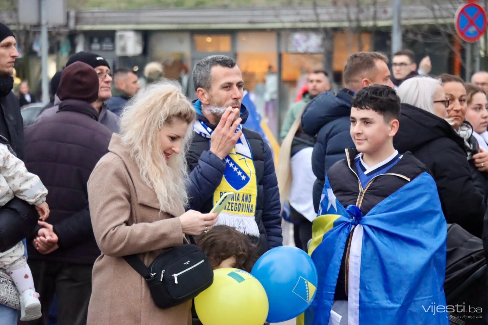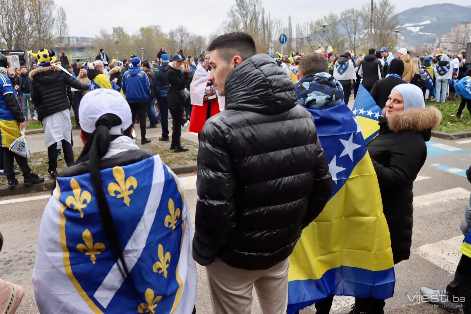 Kako javljaju reporeteri Vijesti.ba, ulice su ispunjene navijačima iz svih krajeva Bosne i Hercegovine, a uzbuđenje raste iz minute u minutu kako se bliži početak velikog susreta protiv Italije.