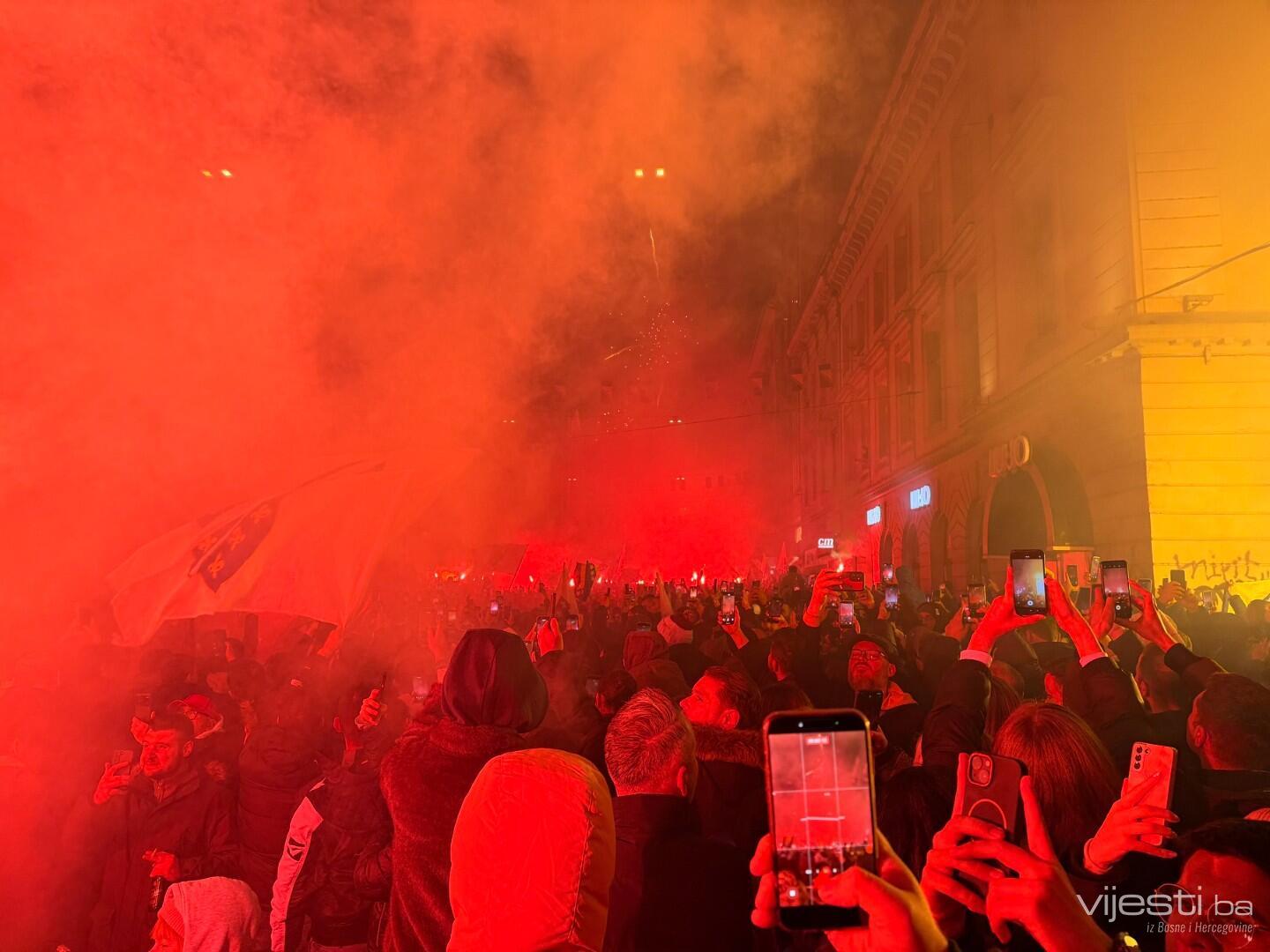Baklje, pjesma i zastave stvaraju ambijent koji će se dugo pamtiti, dok cijela zemlja slavi plasman na Svjetsko prvenstvo.