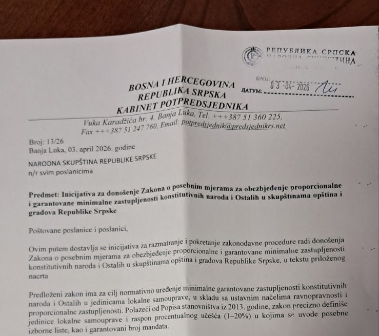Potpredsjednik bh. entiteta Republika Srpska Ćamil Duraković uputio je Narodnoj skupštini inicijativu za donošenje Zakona o posebnim mjerama za obezbjeđenje proporcionalne i garantovane minimalne zastupljenosti konstitutivnih naroda i Ostalih u skupštinama opština i gradova entiteta Republika Srpska.