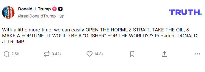 - Uz malo više vremena, možemo lako otvoriti Hormuški moreuz, preuzeti naftu i zaraditi bogatstvo - naveo je Trump u objavi na platformi Truth Social.