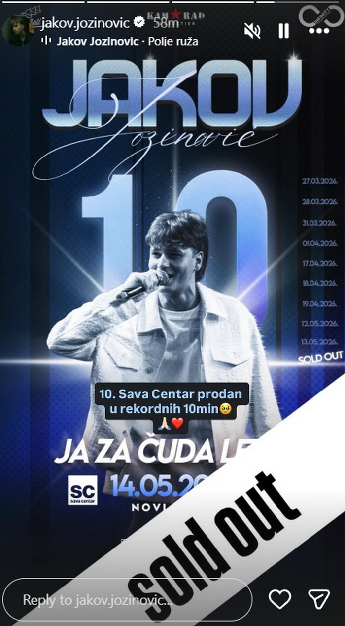 Nakon beogradske koncertne serije, Jozinovića u junu očekuju i veliki nastupi u zagrebačkoj Areni, čime se njegov uspješni niz nastavlja i na domaćem terenu.