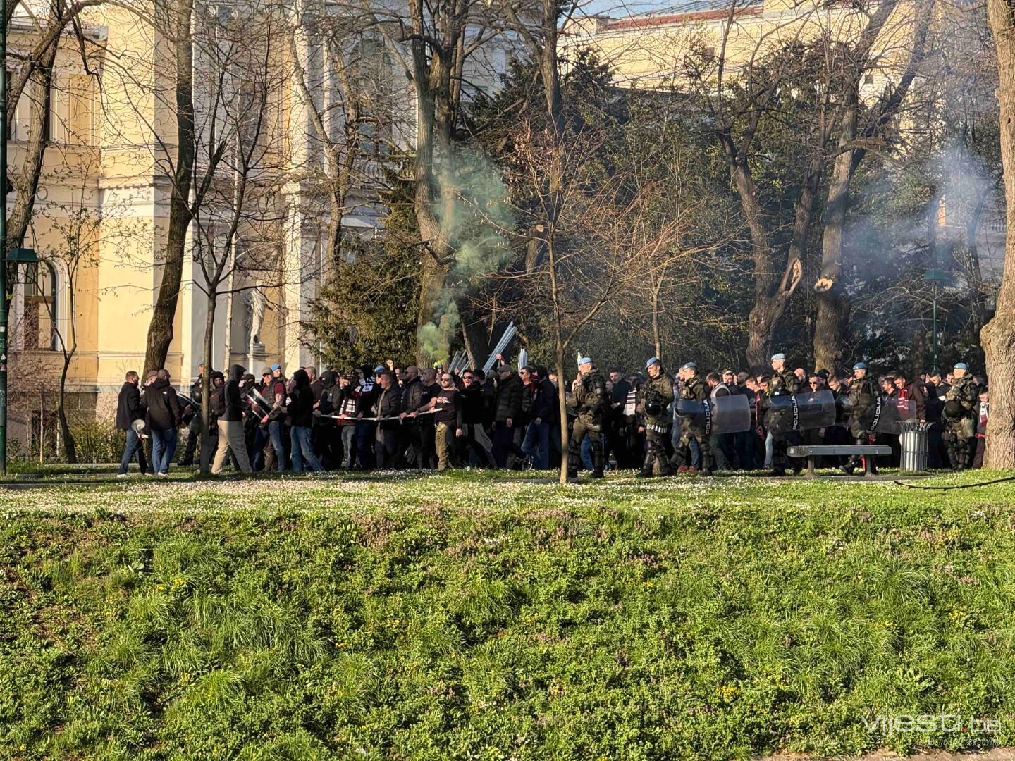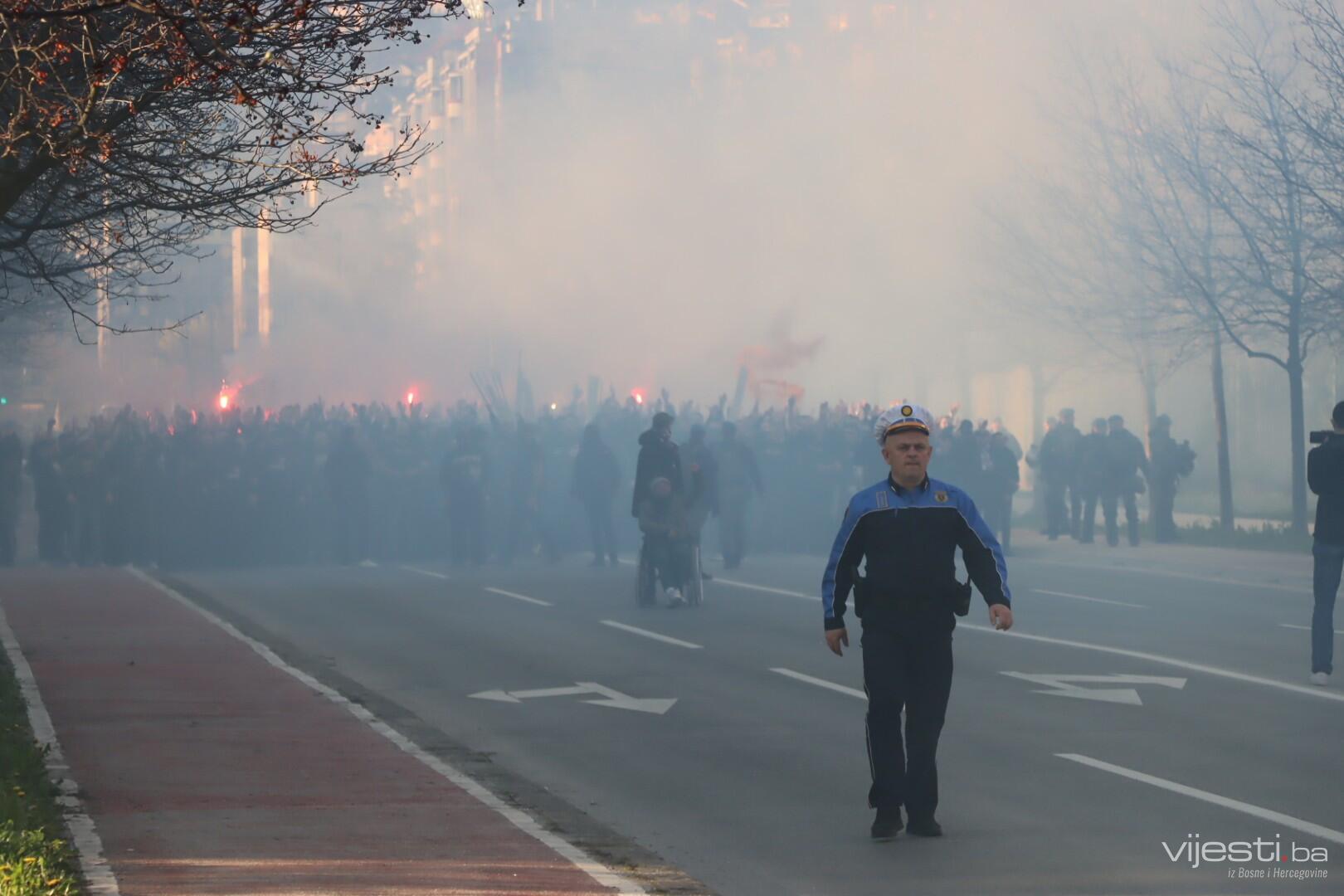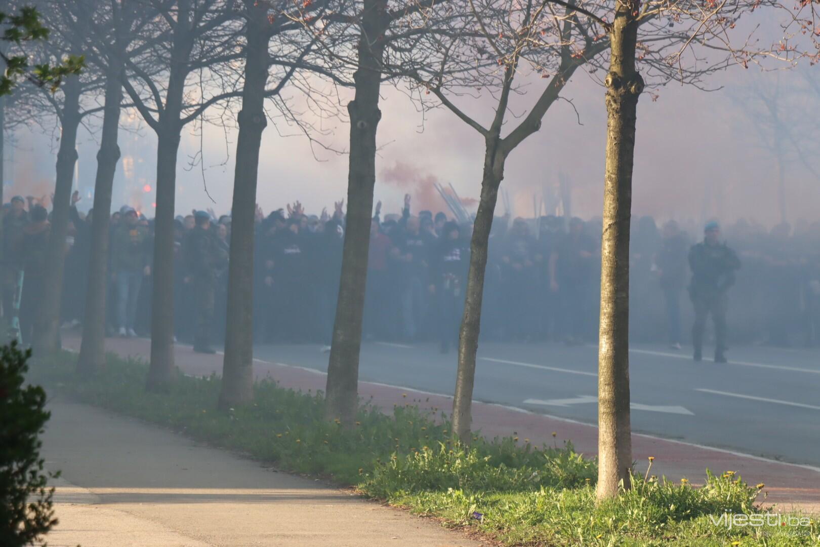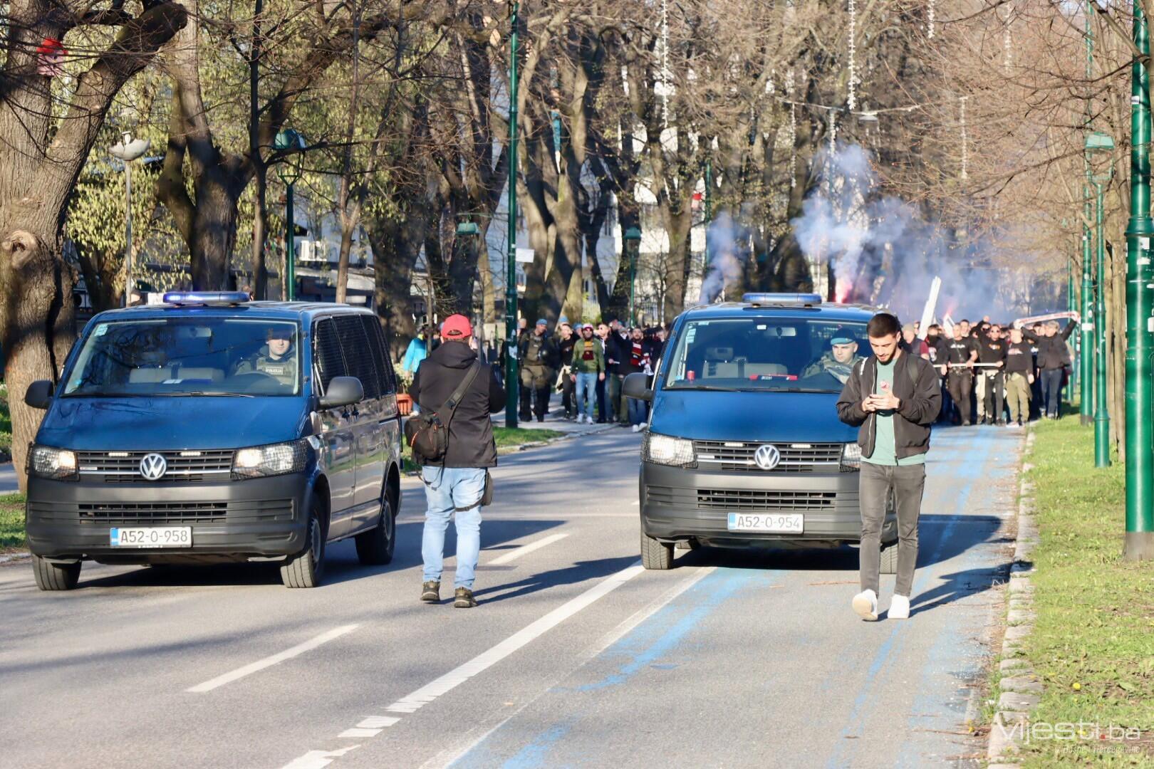 Popularne Horde zla u korteu su prije par trenutaka krenule prema stadionu Grbavica gdje će bodriti svoje ljubimce.