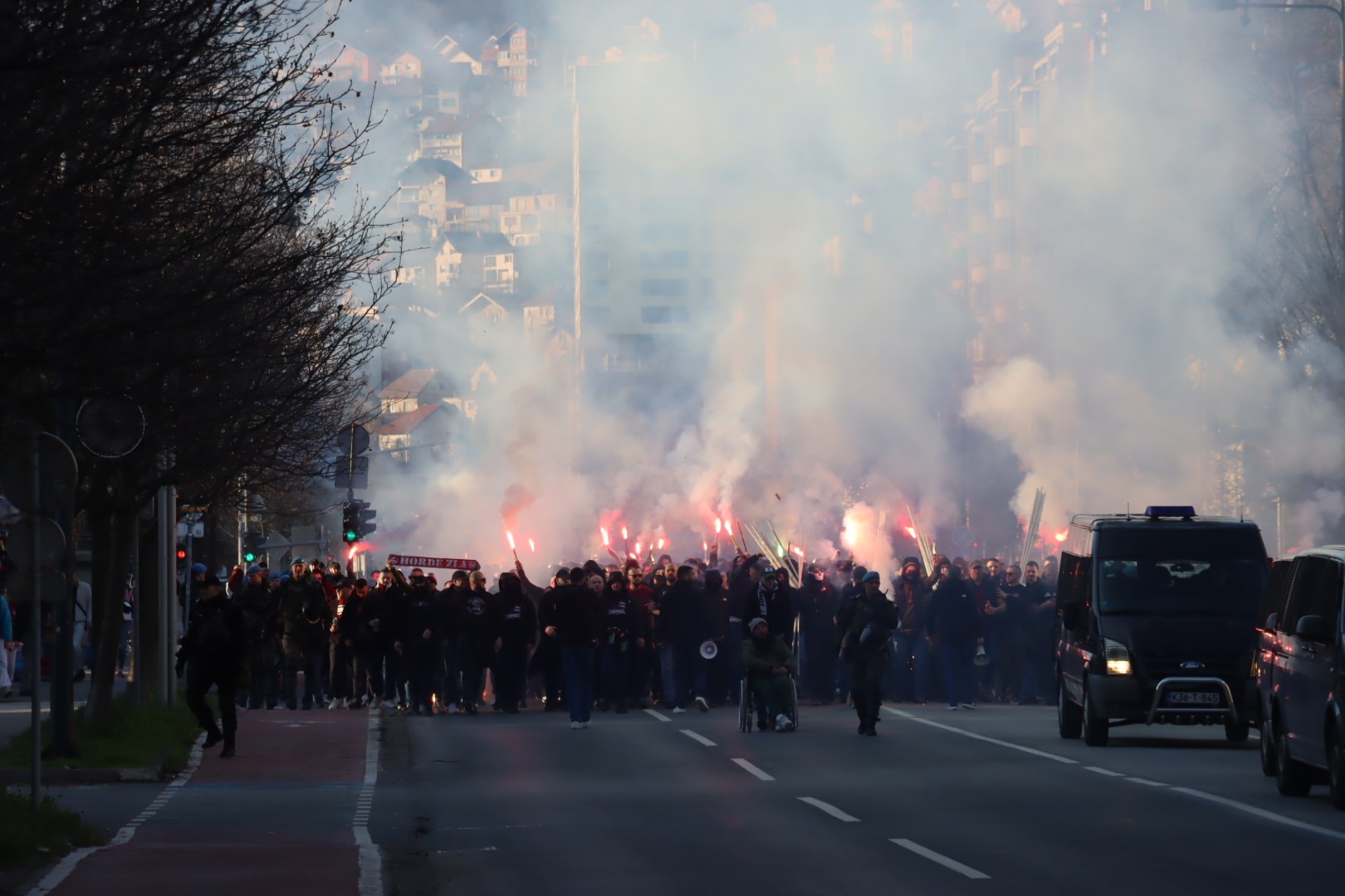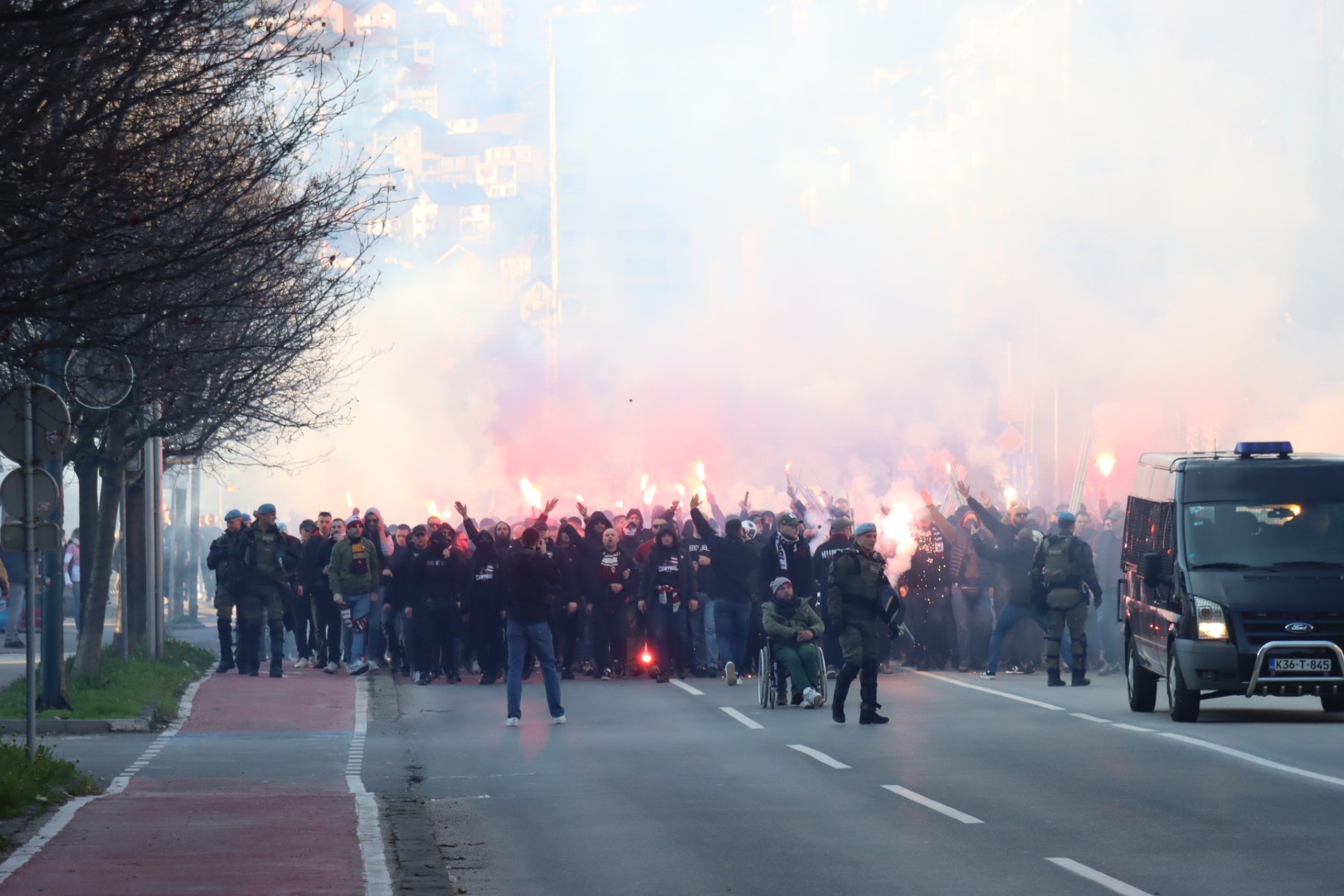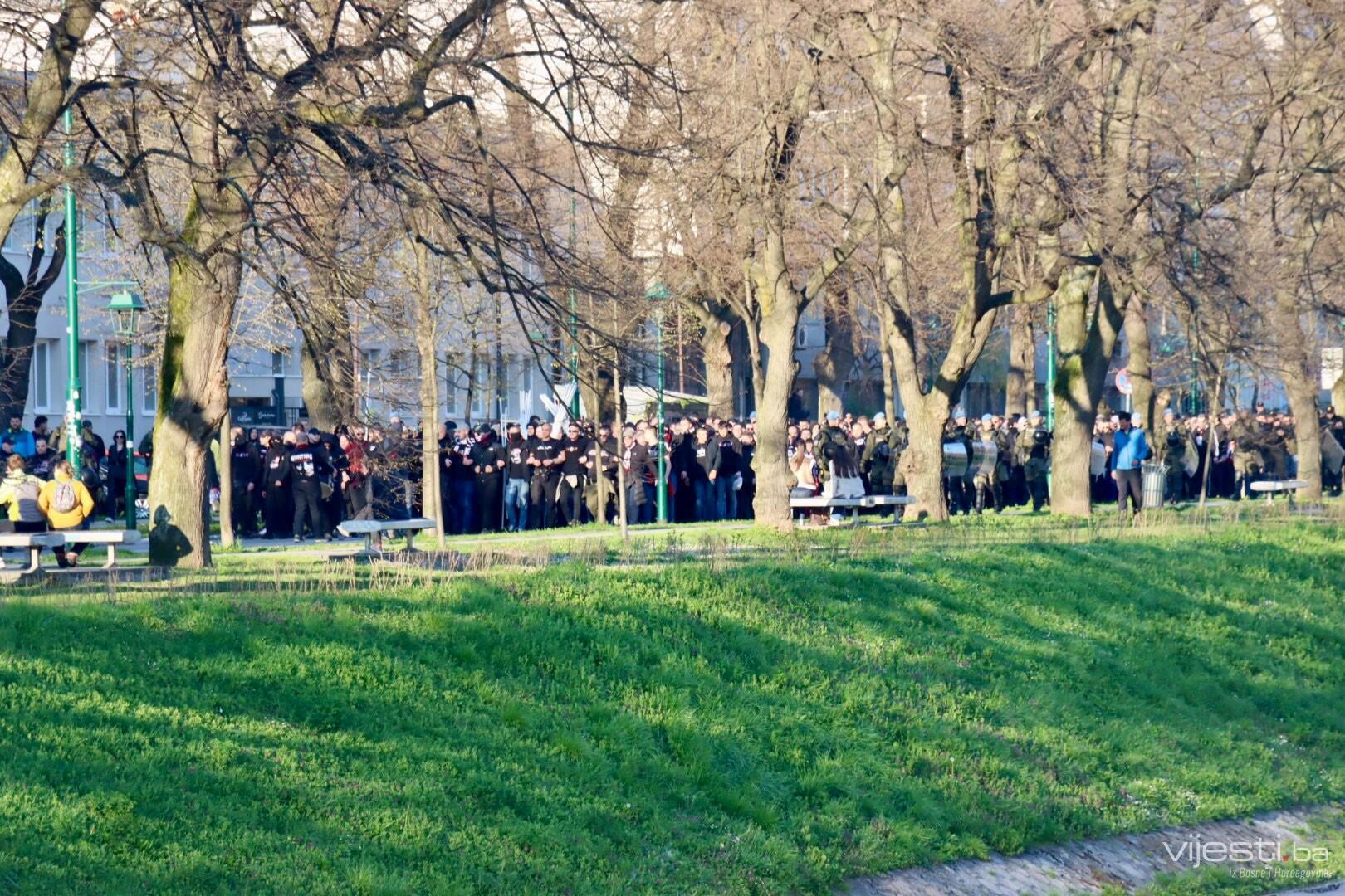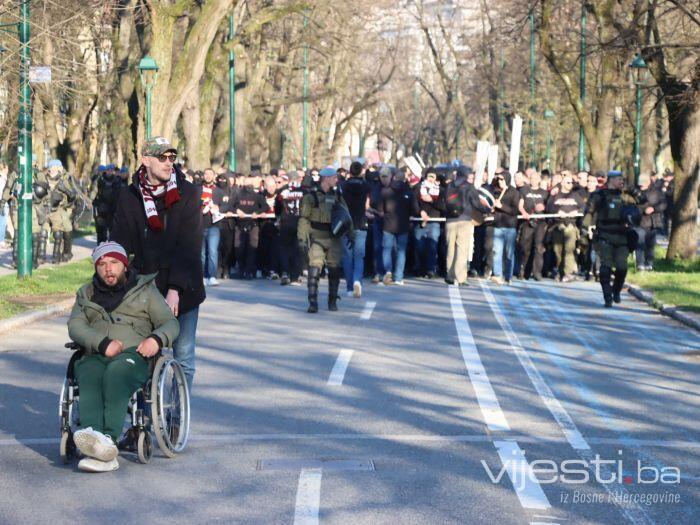 Popularne Horde zla u korteu su prije par trenutaka krenule prema stadionu Grbavica gdje će bodriti svoje ljubimce.
