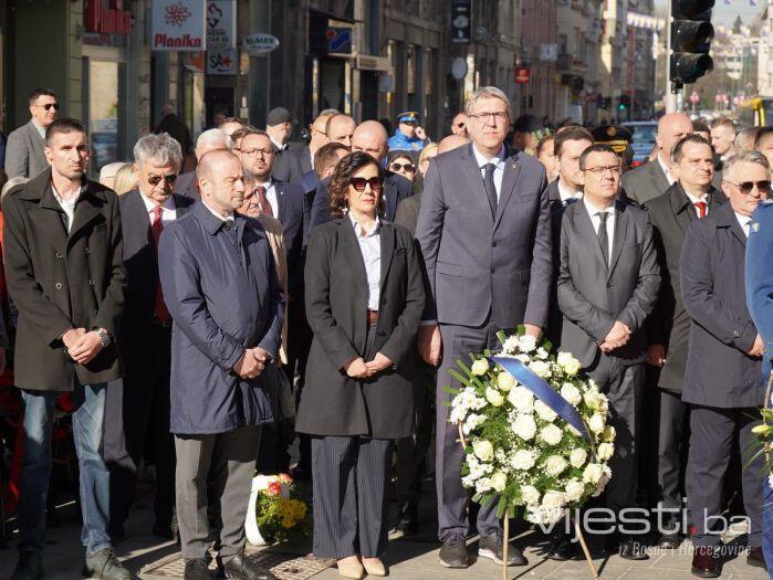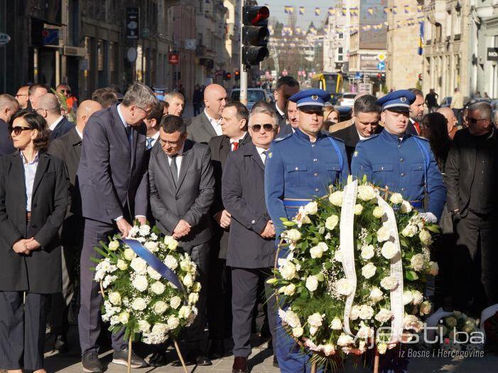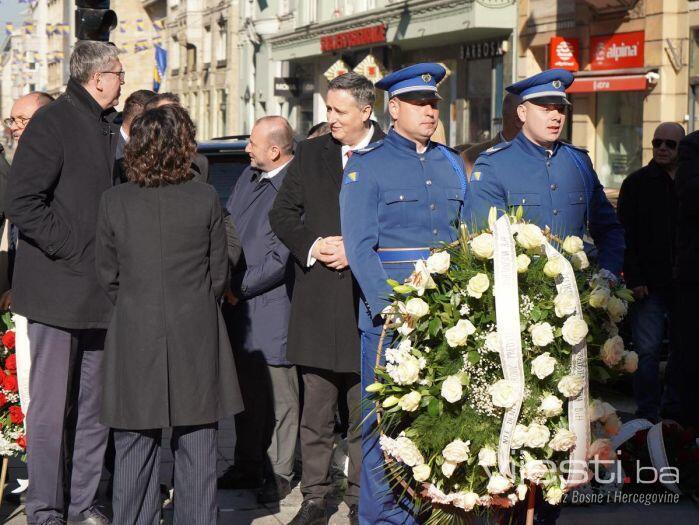 Delegacije svih nivoa vlasti, predstavnici institucija, boračkih organizacija i građani položili su cvijeće i odali počast na spomen-obilježju Vječna vatra i Šehidskom mezarju Kovači, a potom spomen-obilježju ubijenoj djeci opkoljenog Sarajeva, spomen-obilježju ubijenim policajcima u Velikom parku i spomen-parku Vraca.