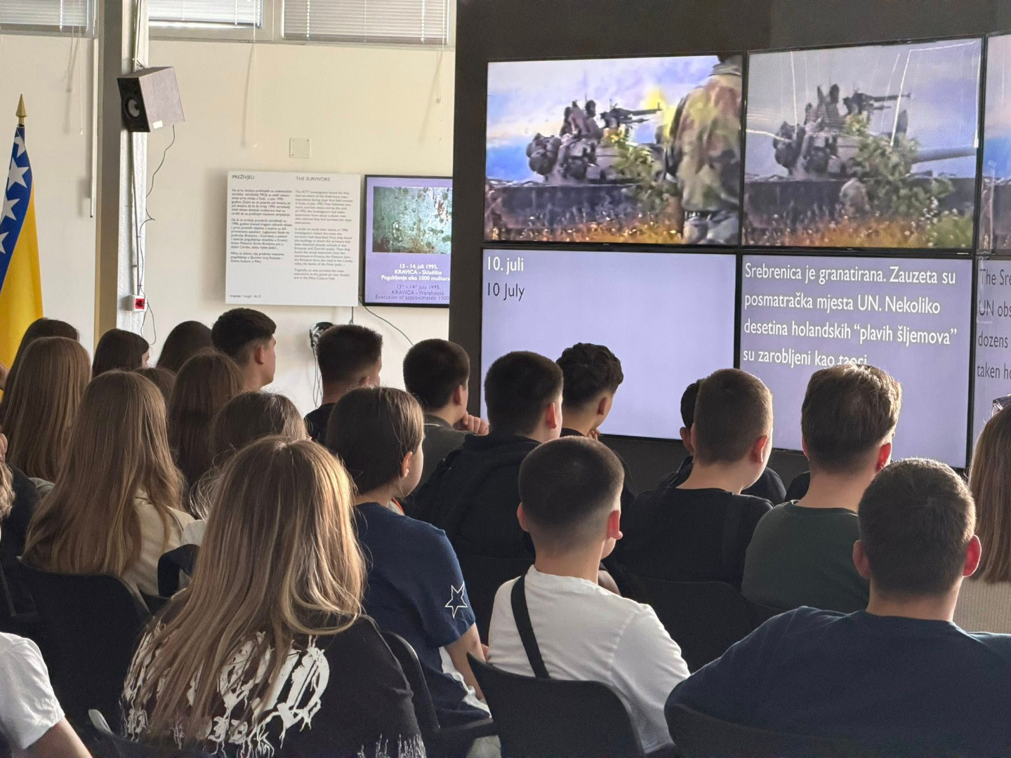 Tokom posjete, učenici su obišli Memorijalni centar u Potočarima, gdje su imali priliku čuti predavanja o događajima iz prošlosti, kao i odati počast žrtvama. U Srebrenici počinjen je genocid u julu 1995. godine, kada je ubijeno više od 8.000 nevinih Bošnjaka. Genocid su počinile snage Vojska Republike Srpske uz učešće paravojnih formacija iz Srbija.