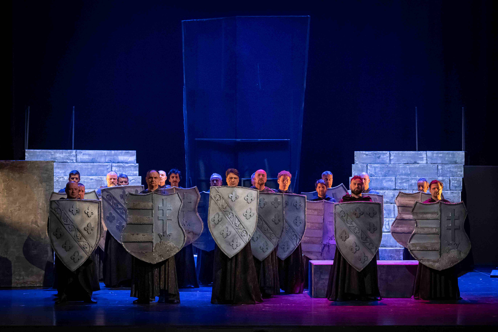 Jasmin Bašić je iznio lik Hrabrena, pristava; Elizabetu, kraljicu ugarsku Dajana Šegvić; a mletačkog izaslanika Josip Katavić. Dalmatinski izaslanik je Siniša Markanović; Nicolo, Ermin Ašćerić; Abdulaziz, Nedim Bašić. Lazarovog glasnika igrao je Edin Daši, ugarskog glasnika Dejan Kajević, a Vladislava Dabišića, brata Vuka Dabišića Haris Bidžan.