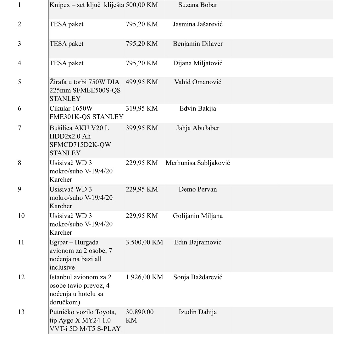 U nastavku objavljujemo spisak svih dobitnika...