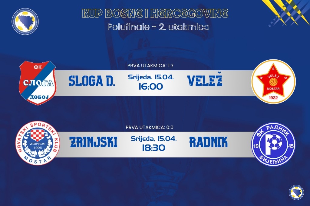 Prvi će na teren izaći igrači Sloge i Veleža od 16:00 sati, a pravdu na ovom susretu će dijeliti Tomić Antonio. Njegovi asistenti bit će Žugić Nebojša i Maskaljević Perica.
