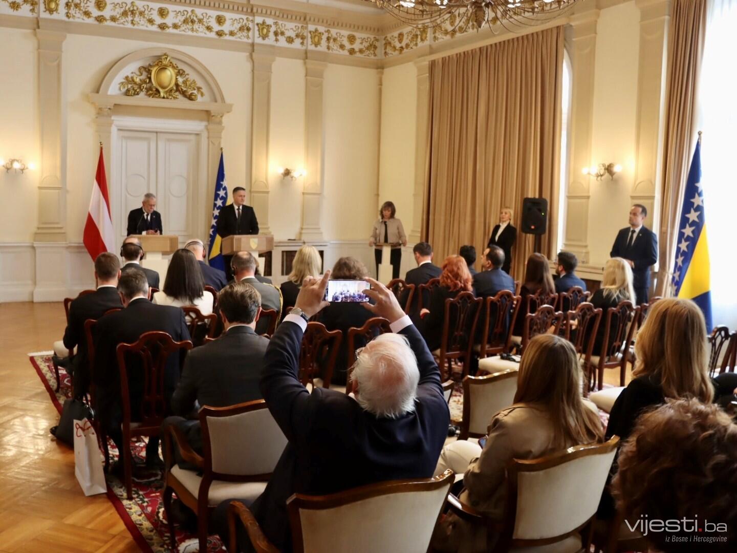 - Imali smo nasrtaje na ustavni poredak BiH. Značajna nam je bila principijelna politika Austrije, politika pune podrške nezavisnosti, suzverenitetu i teritorijalnom intgritetu BiH. To nam je važno. Istakli smo nastavak naše saradnje u oblasti odbrane. Naši ljudi se školuju u Beču. Zahvaljujemo se na drugim projektima i ta saradnja treba da bude još kvalitetnija u narednom periodu. Mi smo u proteklih 30 godina sklopili niz sporazuma koji su omogućili takvu saradnju - podsjetio je Bećirović.