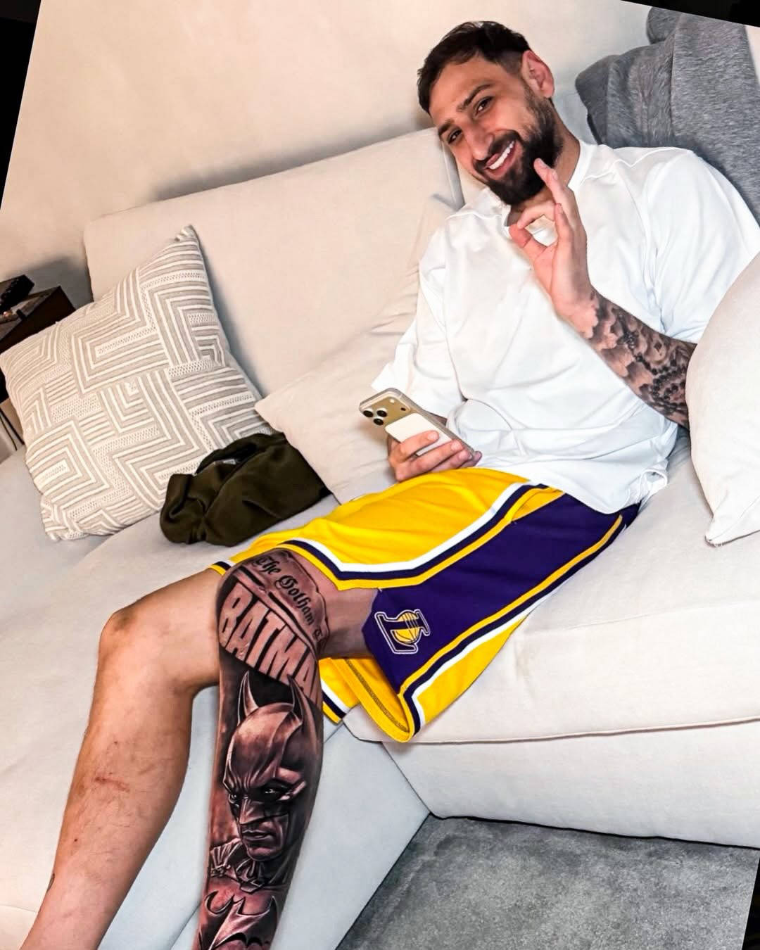 Naime, poznata italijanska Gazzetta dello Sport objavila je fotografiju Donnarumme u šorcu LA Lakersa, na kojoj se jasno vidi njegova nova tetovaža – veliki motiv Batmana na nozi.