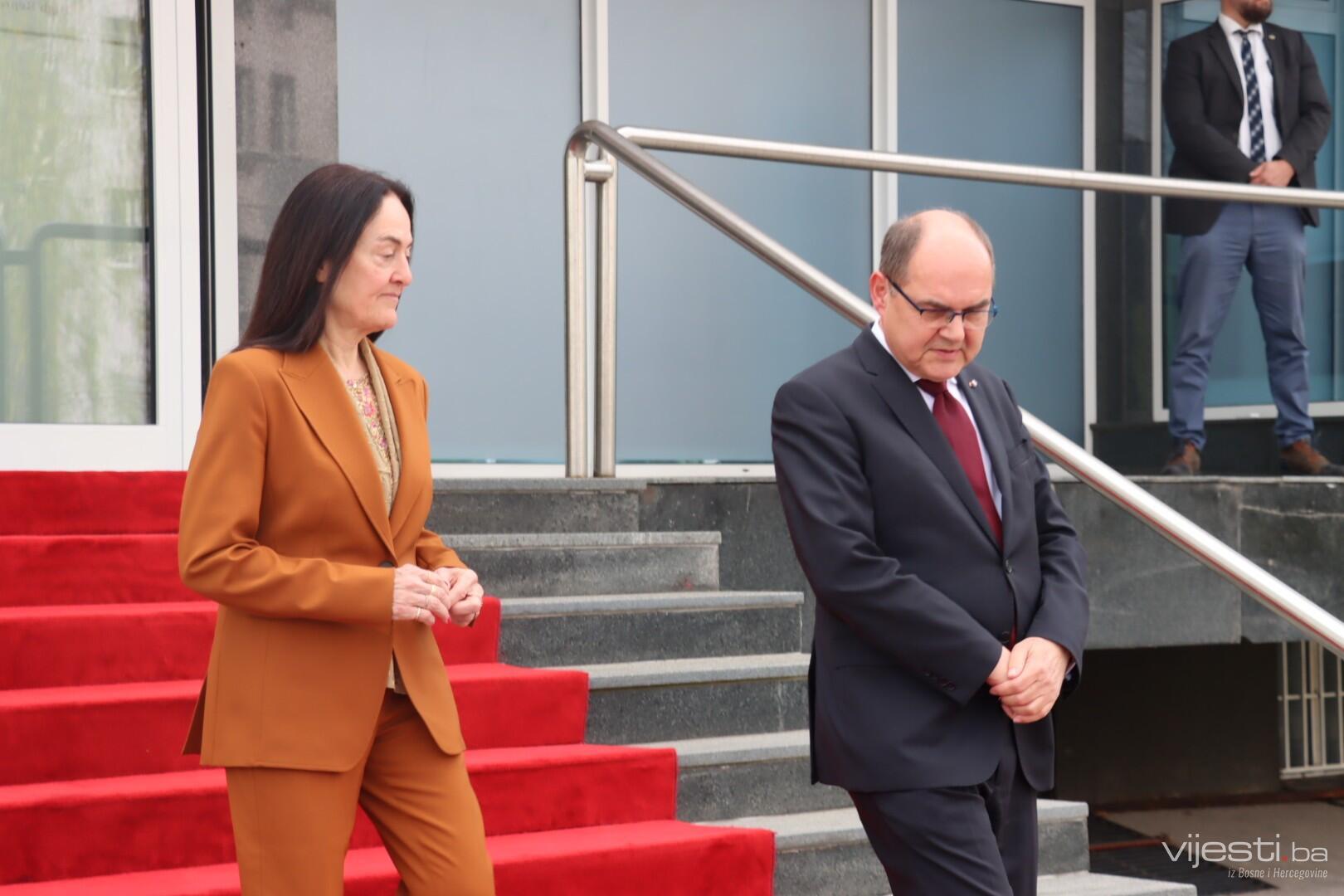 Dočekali su ga predsjedavajući Predsjedništva Bosna i Hercegovine Denis Bećirović i član Predsjedništva BiH Željko Komšić, a održan je i tete-a-tete susret.