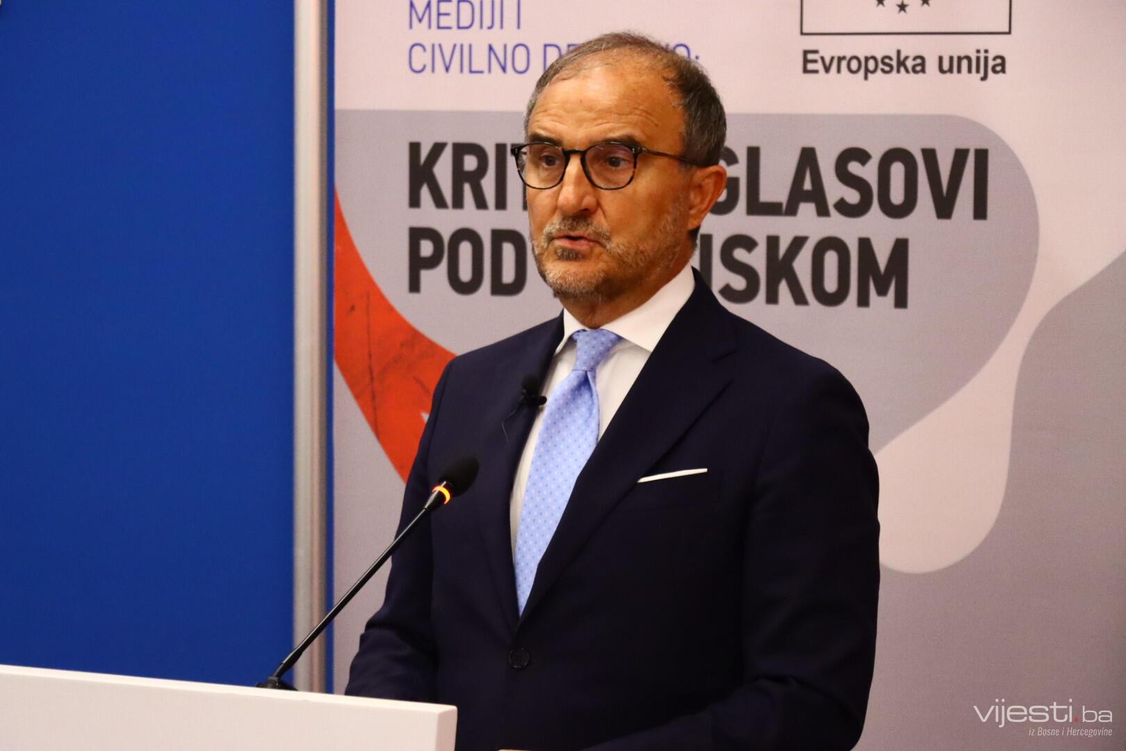 Šef Delegacije Evropske unije (EU) u BiH i specijalni predstavnik EU u BiH ambasador Luigi Soreca, koji je otvorio konferenciju, kazao je da se približavanjem 3. maja, Svjetskog dana slobode medija, naglašava važnost uloge novinara u demokratskom društvu, uključujući i BiH.