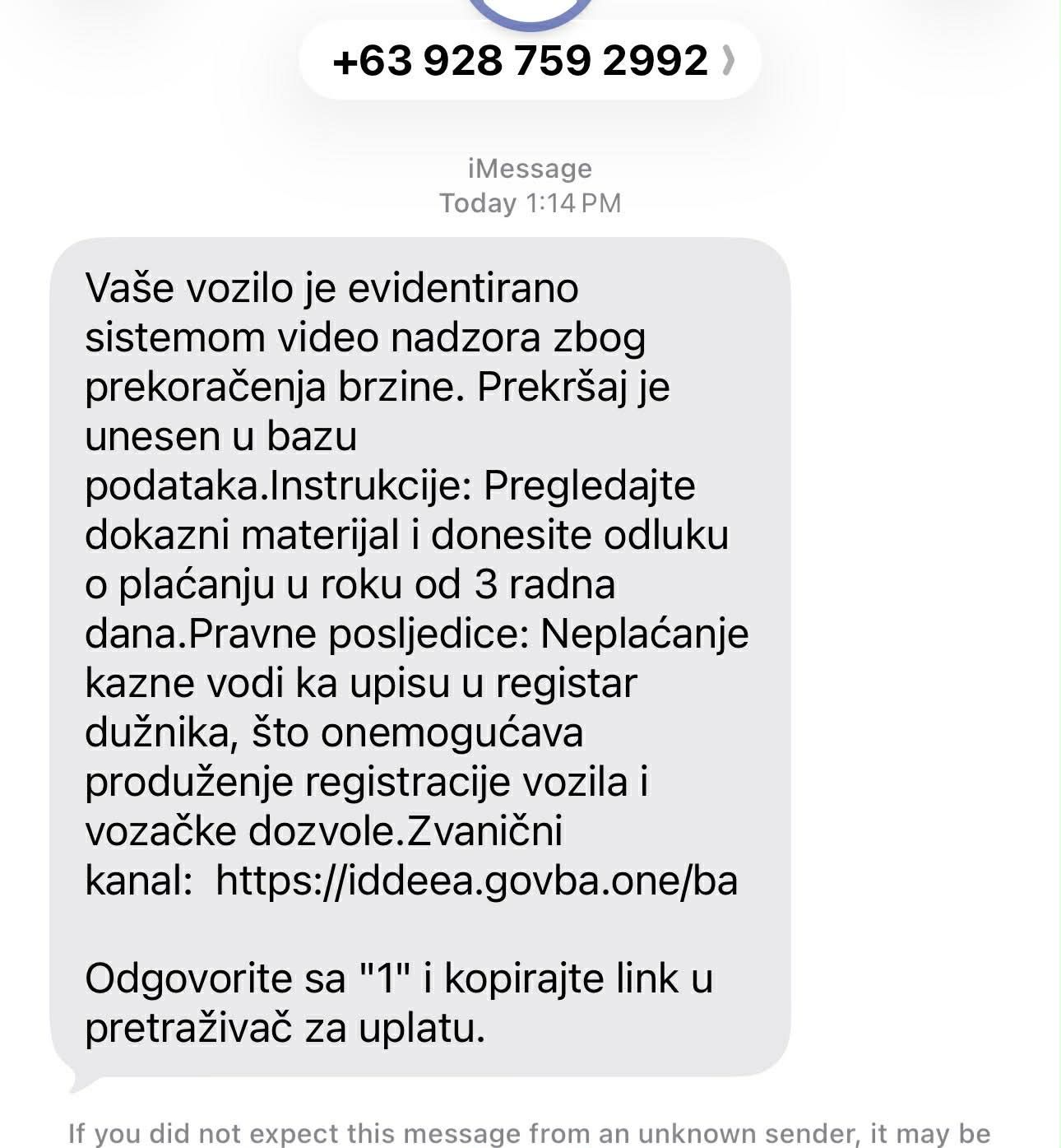 Građanima se šalju poruke u kojima se lažno navodi postojanje saobraćajnih kazni, hitnih rokova za plaćanje, pravnih posljedica i navodnih registara dužnika, uz dostavljanje sumnjivih internet linkova koji nemaju nikakve veze sa zvaničnim sistemima institucija Bosne i Hercegovine.