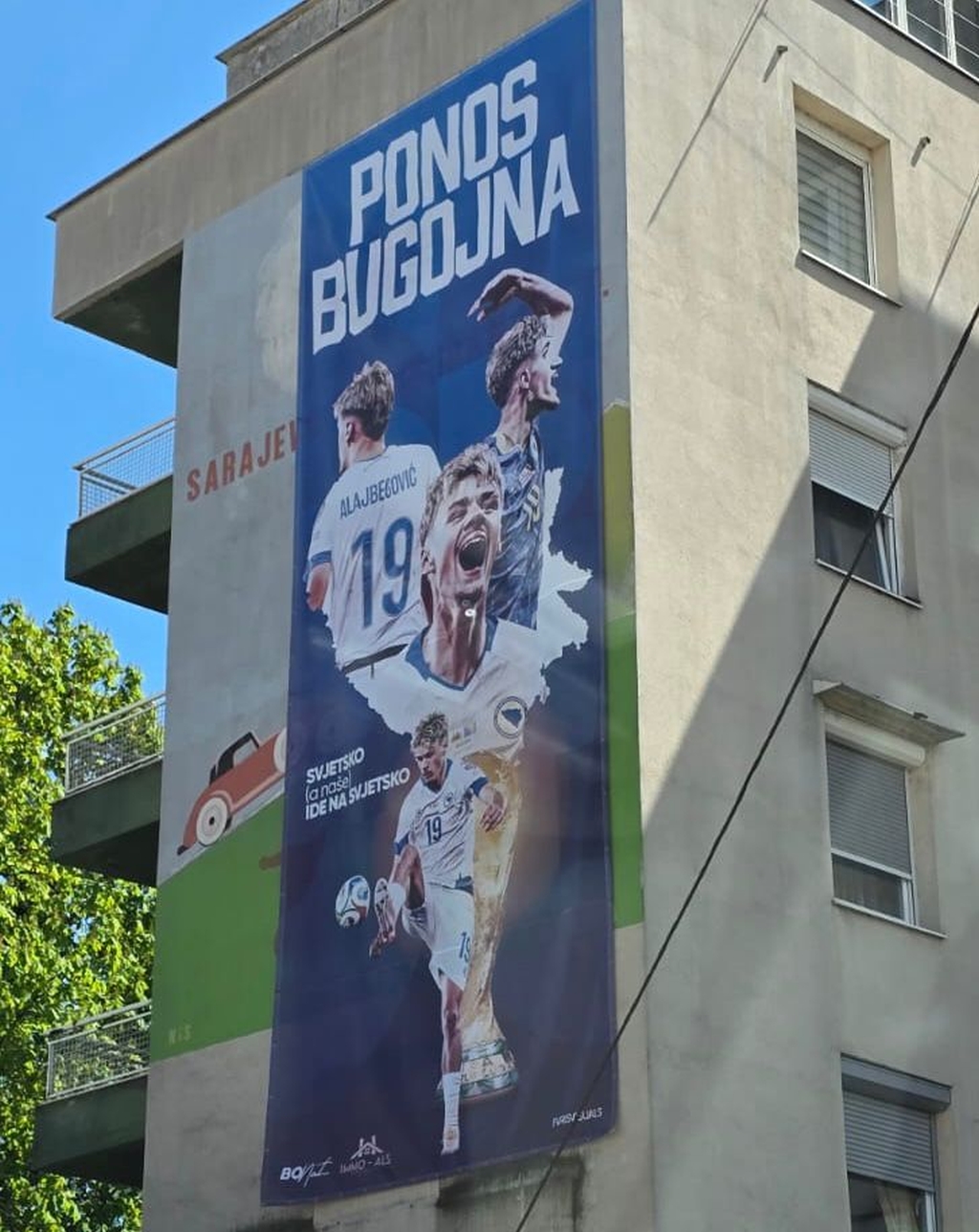 "Ponos Bugojna - Svjetsko (a naše) ide na Svjetsko", piše na bilbordu koji krasi jednu zgradu u ovom bh. gradu.