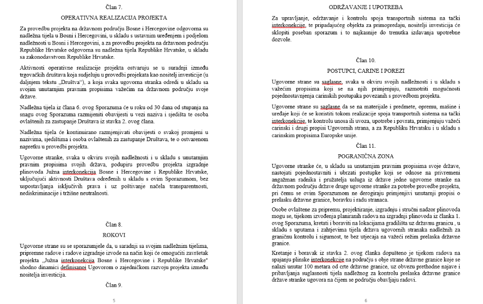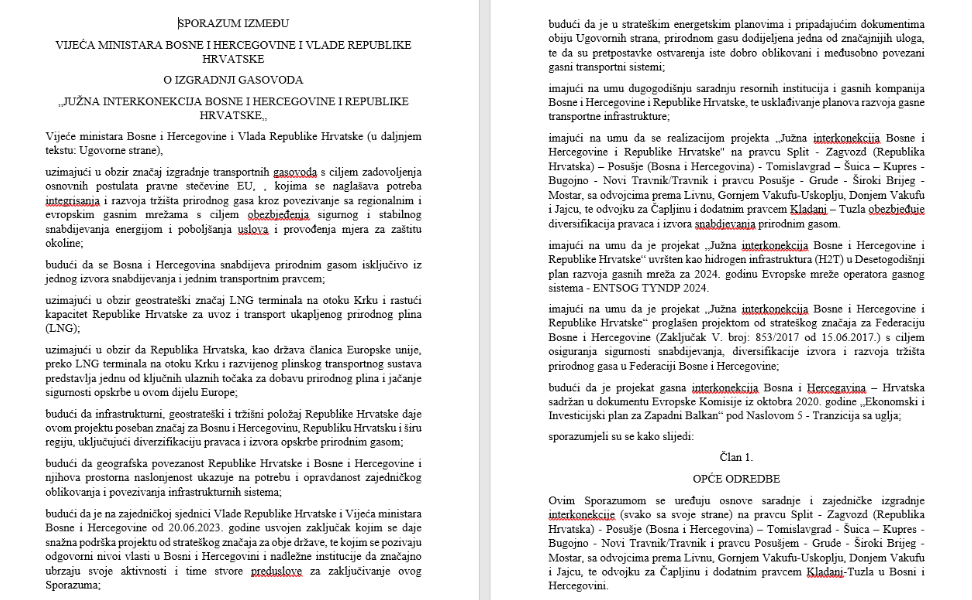 Jedna od ključnih novina jeste i obaveza BiH da unaprijed rezerviše kapacitete za transport ukapljenog plina putem LNG terminala na Krku, dok će Hrvatska prije početka realizacije izraditi studiju ekonomske opravdanosti projekta.