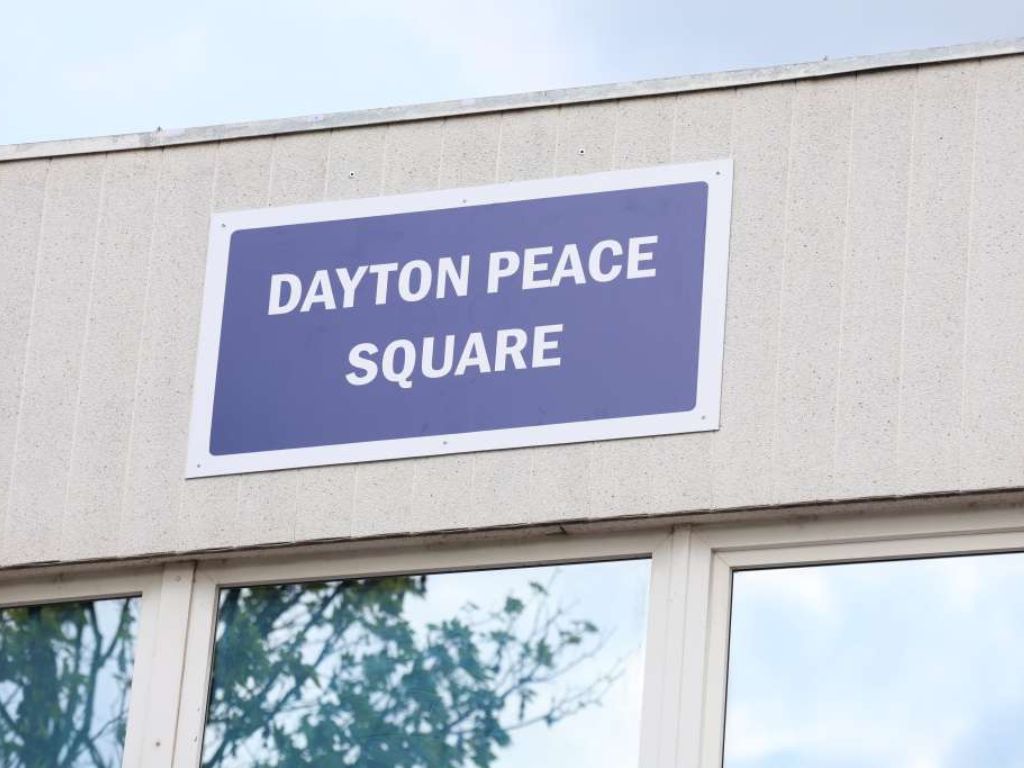 Gradonačelnik Sarajeva Samir Avdić je kazao da ploča je "Dejtonski trg mira", koju danas zajednički postavlja sa visokim predstavnikom Christianom Schmidtom, simbol partnerstva, odgovornosti i trajne posvećenosti miru.